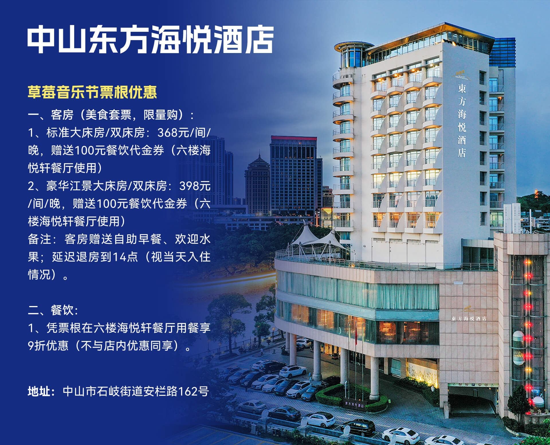 凭票根享东方海悦酒店住宿优惠↓