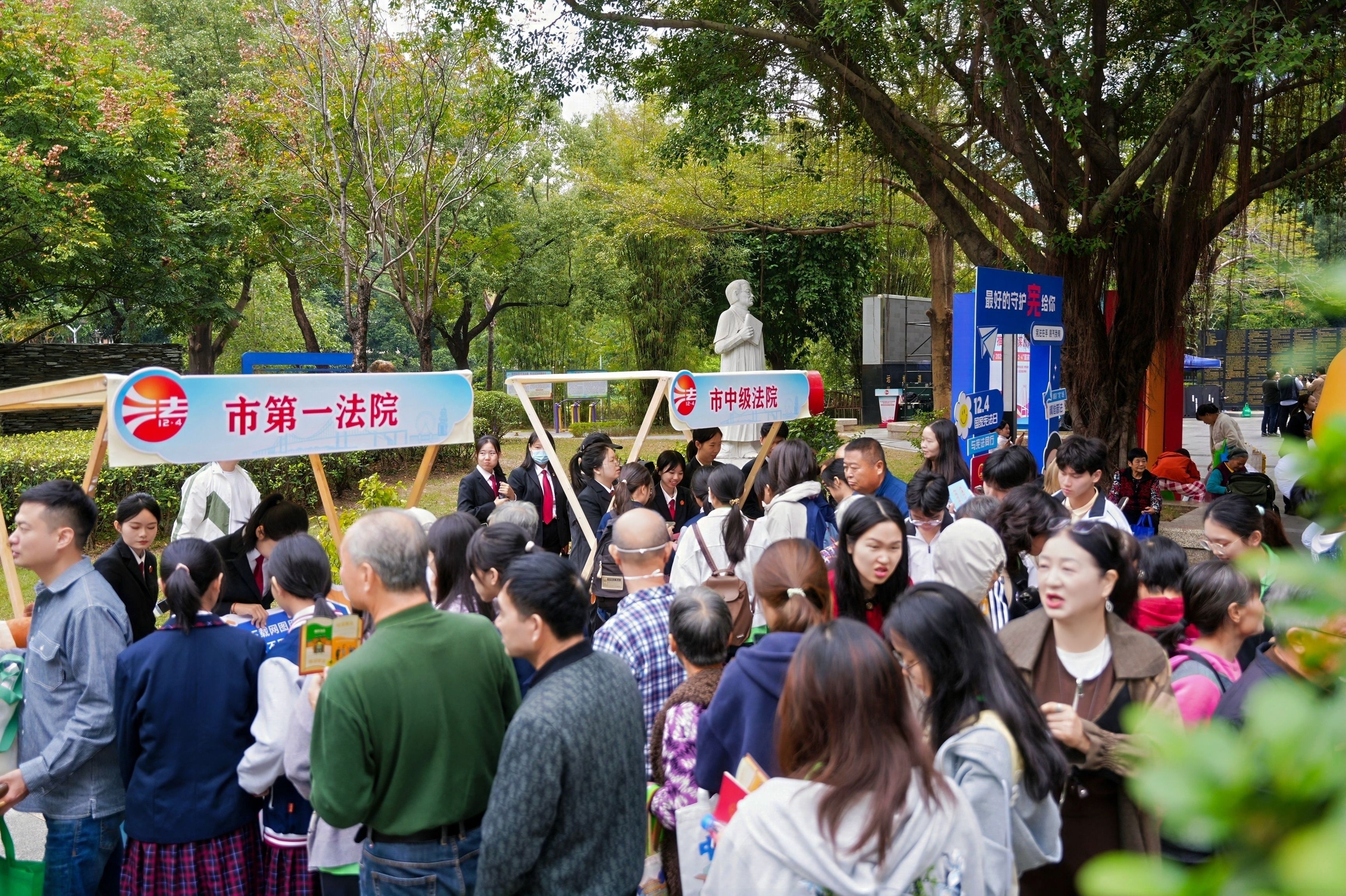 12月4日,由中山市普法办、市中级法院、市司法局联合主办的2025年“12·4”国家宪法日主题活动在市法治文化公园举行。全市45家单位共同参与,正式开启宪法宣传周系列活动。