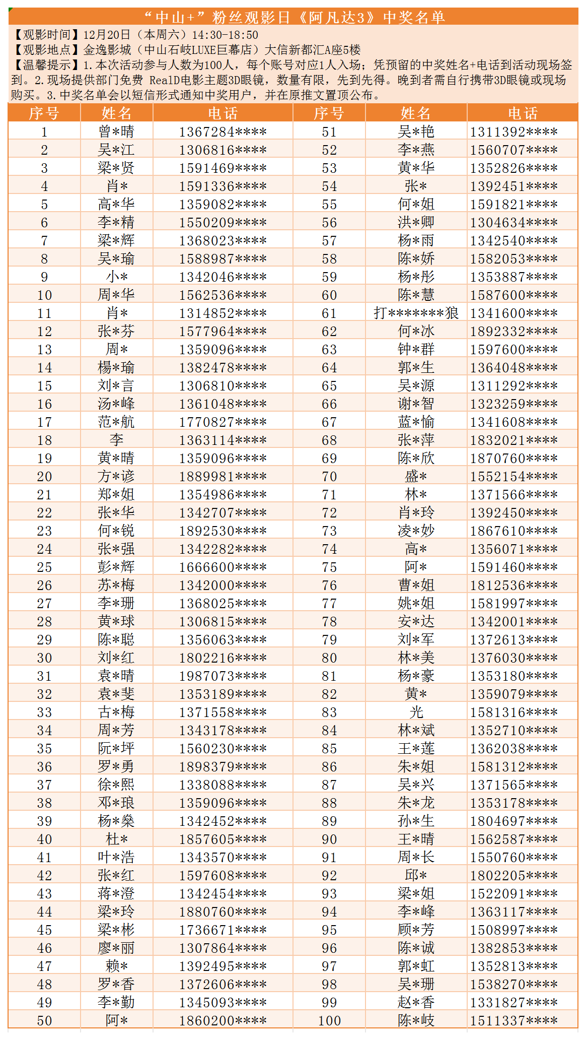 1.本次活动参与人数为100人,每个账号对应1人入场;凭预留的中奖姓名+电话到活动现场签到。