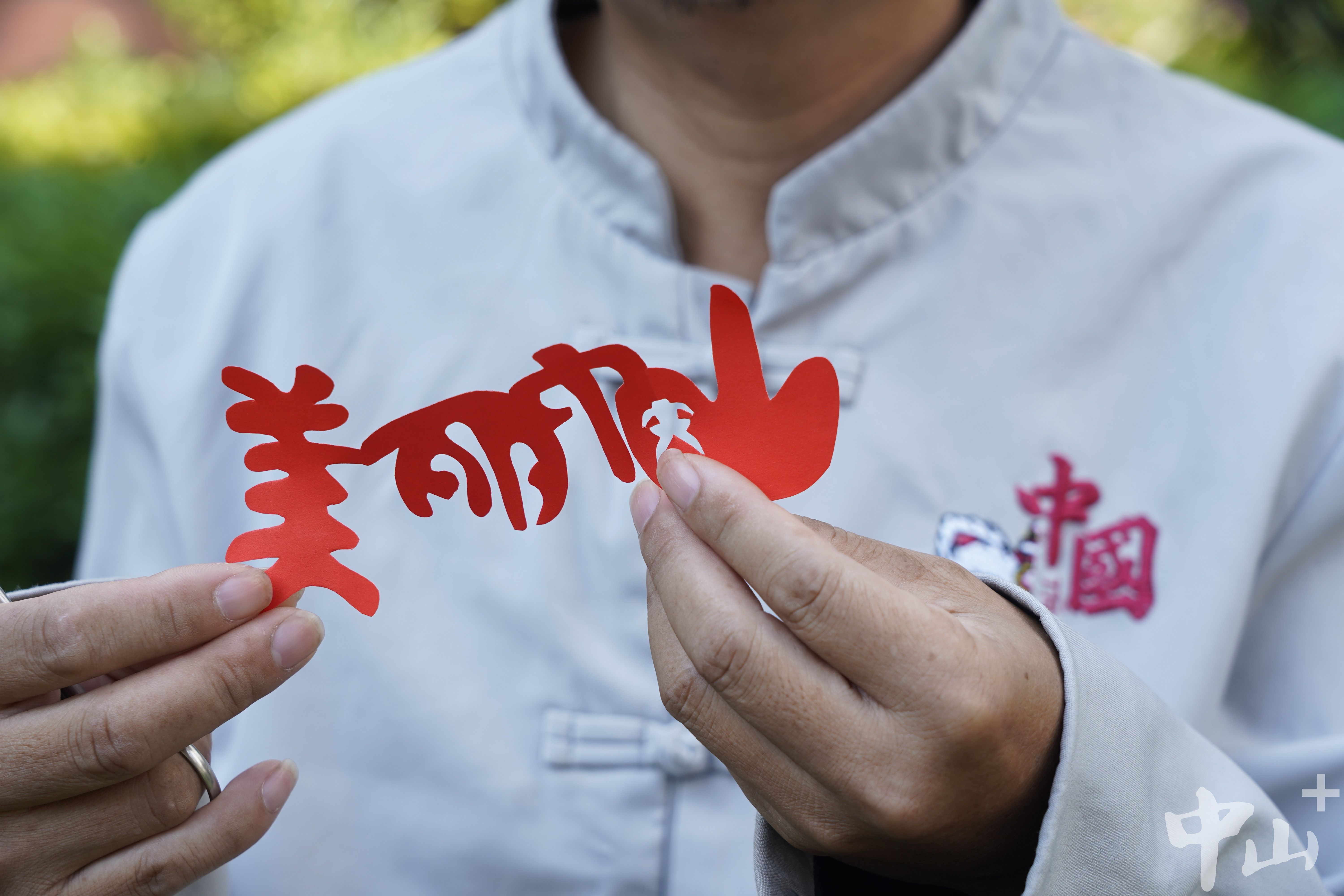中国民间文艺家协会会员、国家级非遗潮州剪纸代表性传承人黄朝阳,现场以剪为笔,描绘中山之美。17日采访当天,他特意创作了“美丽中山”主题作品。作品中间巧妙融入“文”字,藏着文艺赋能的深意。“感谢省文联、中山市文联提供学习机会,让我感受到中山的美好。”黄朝阳说,这幅作品,正是他对中山最真挚的祝福。