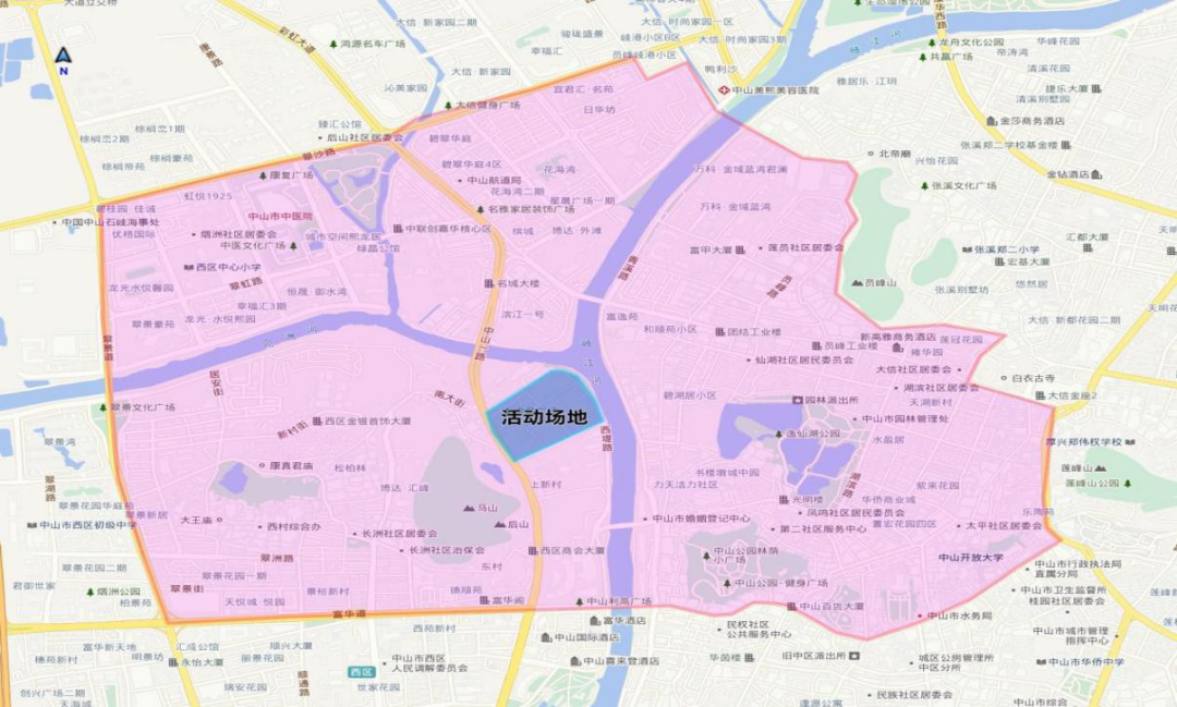 中山市西区马山片区富业大街北侧草坪及其周边范围。