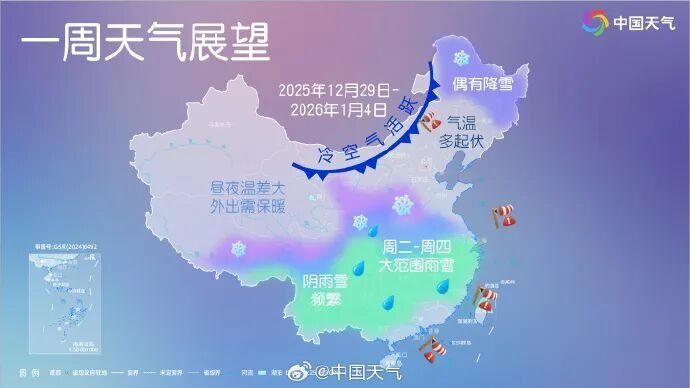 据@中国天气 消息,跨年冷空气即将登场。今天(12月30日)起,一股强冷空气将携雨雪、降温影响我国中东部。今日夜间至元旦早晨,黄河以南等地将出现大范围雨雪天气。