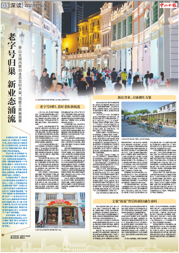 从孙文西路步行街在国庆、元旦假期交出的“成绩单”来看,这里俨然已成为中山文旅“顶流”。数据显示,孙文西路步行街国庆假期吸引百万人次打卡、元旦假期吸引65万人次游客入场。咀香园、南城行、孙奇珍茶楼、中山非遗文创馆等成为热门打卡地。这条街的兴旺,同步带旺了整个古城,所有店铺都成为受益者。从另一方面看,这也让这些店铺更加加深了扎根发展的信心,也更有热情与古城共谋发展与未来。