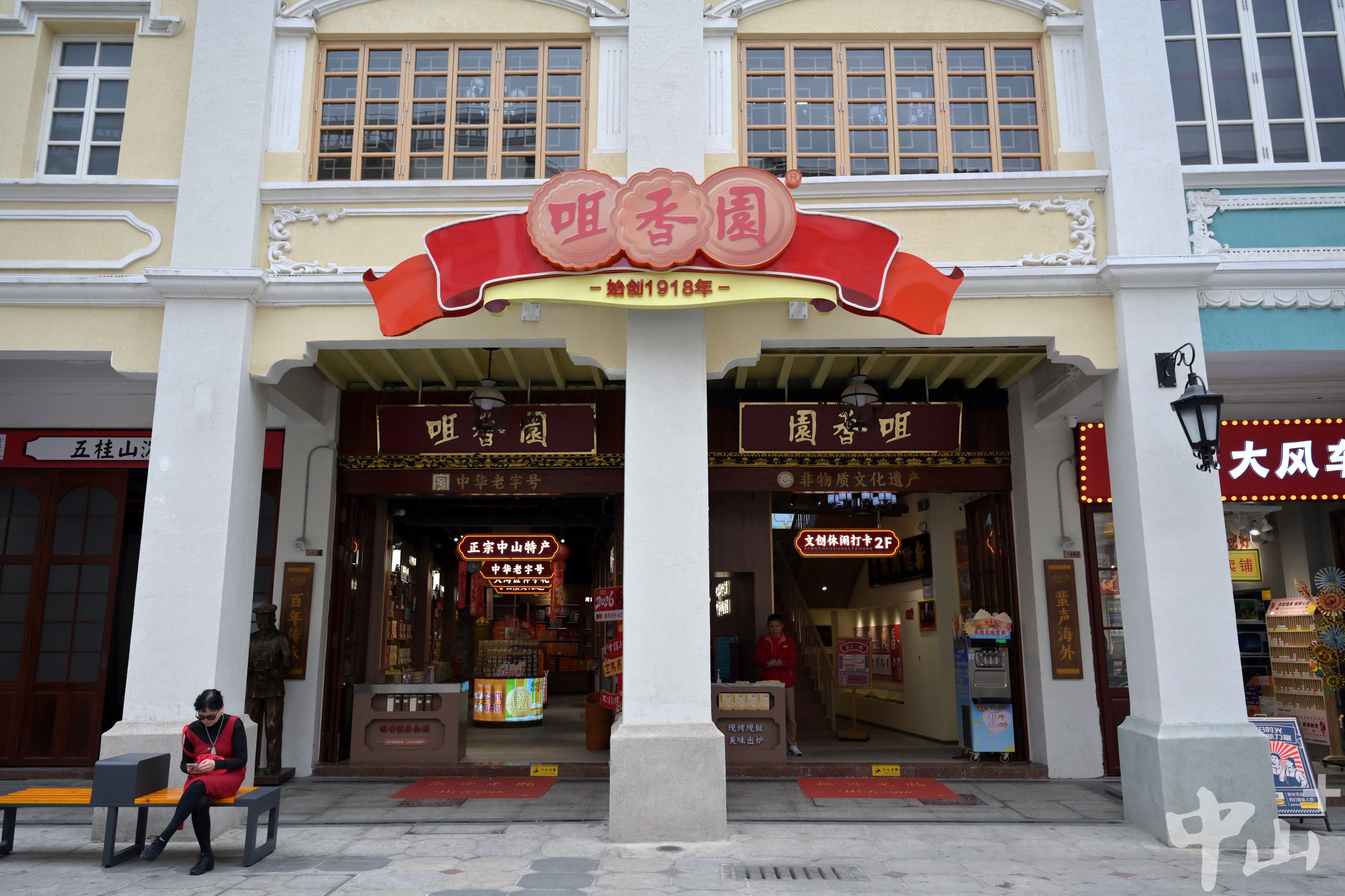 在其辐射带动下,周边香山古城内的业态也在悄然发生变化。一方面,人们耳熟能详的老品牌举旗“回归”,承载许多人童年记忆的中山首家麦当劳在兴中广场重新亮起招牌,“老字号”咀香园、孙奇珍茶楼等衣锦“还乡”……如果说它们代表着中山本土品牌的复兴和街区的怀旧基调,那么另一厢,巧克力博物馆、观山月以及众多咖啡茶饮品牌的进驻,则散发着老街旺盛的生命力,以及独属于“Z世代”的松弛感。