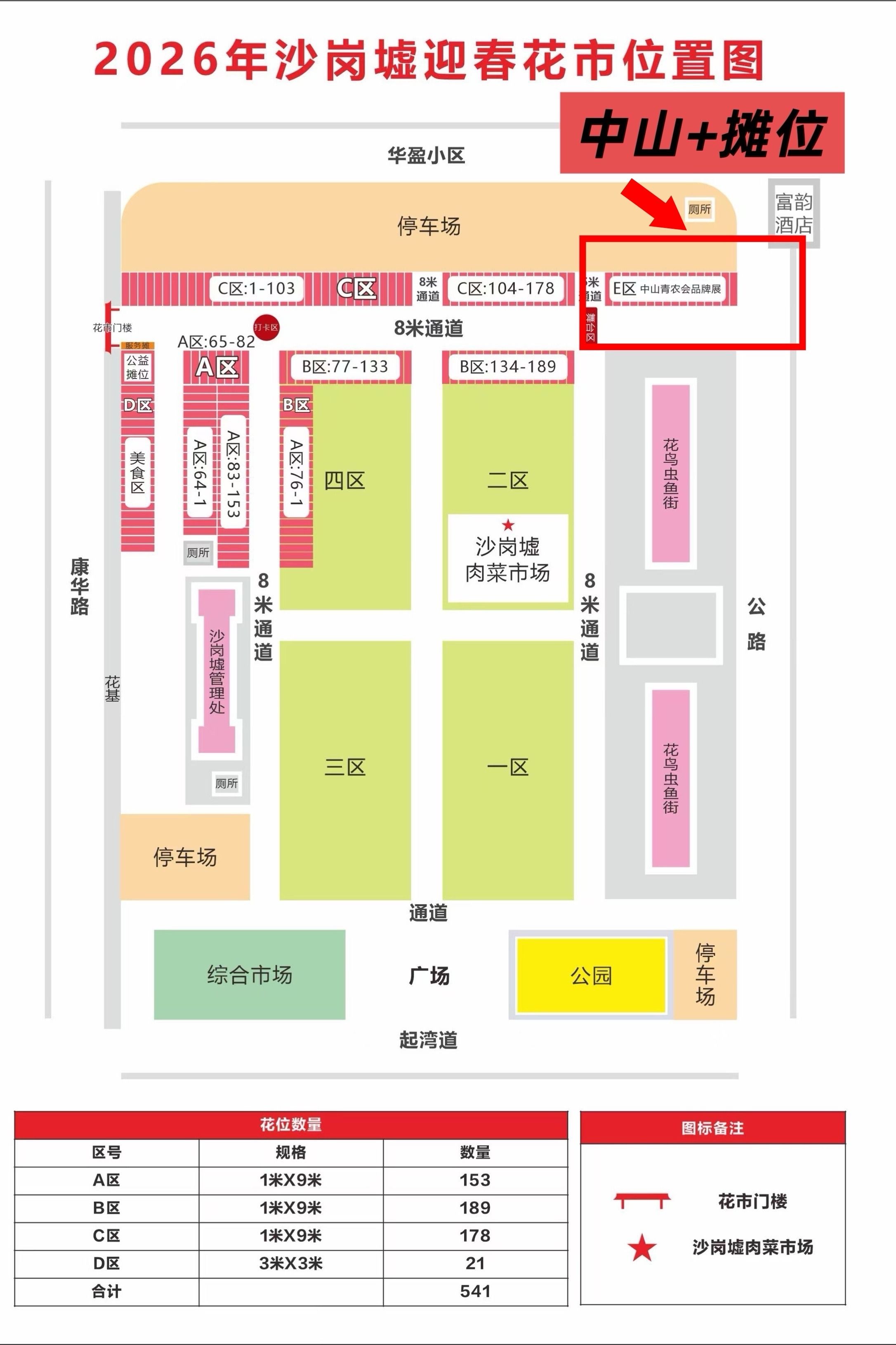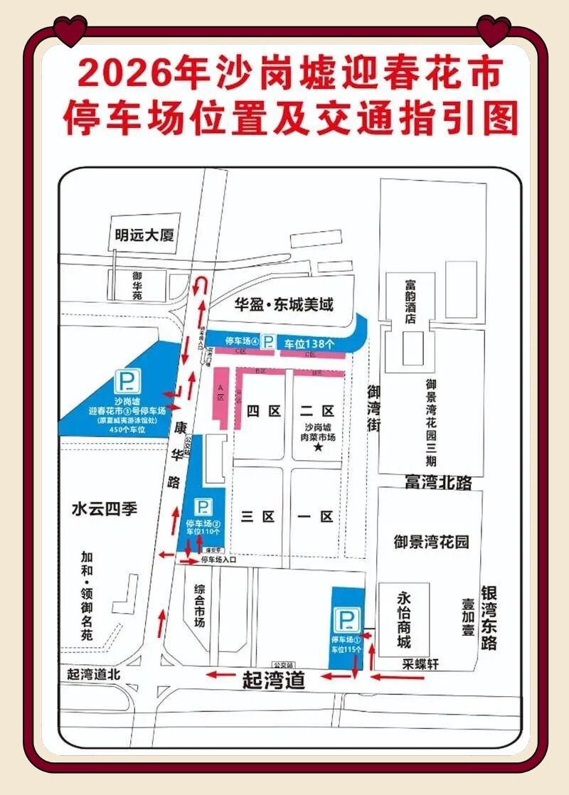 本次沙岗墟花市共设置4个停车场