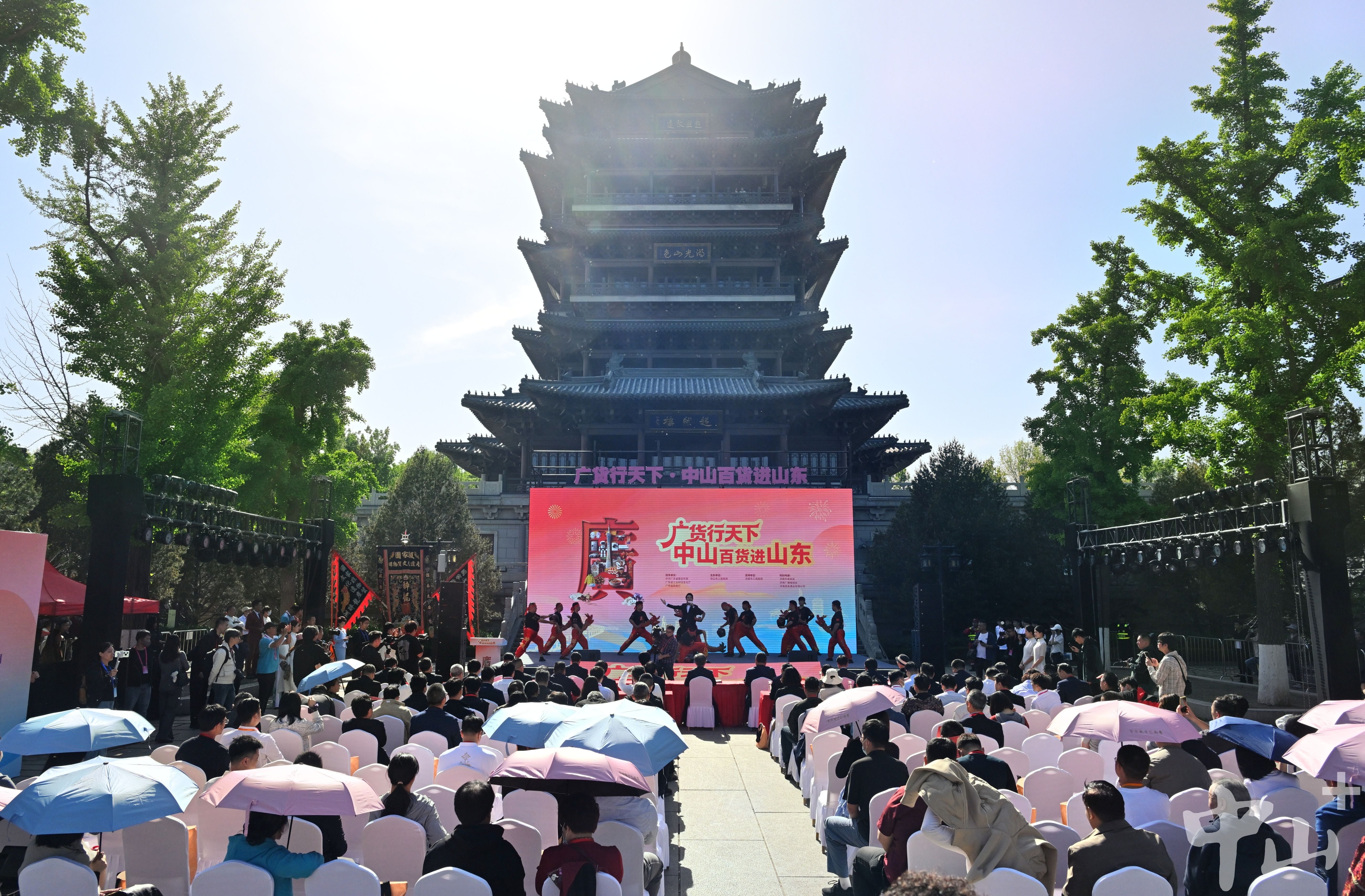 4月20日下午,“广货行天下·中山百货进山东”活动在济南市大明湖景区超然楼广场正式启幕。此次活动由中共广东省委宣传部、广东省工业和信息化厅、广东省商务厅指导,中山市人民政府主办,中山文旅集团执行,旨在推动中山与济南两地产业联动、消费互通,抢抓北方消费市场新机遇,拓宽中山名优产品在华北地区的销售渠道,助力中山企业深度拓展华北市场、链接全国优质资源。