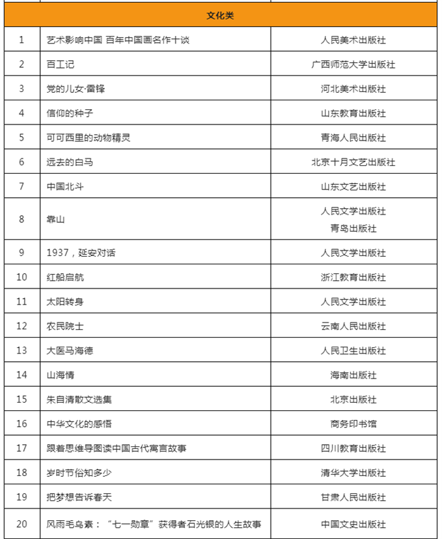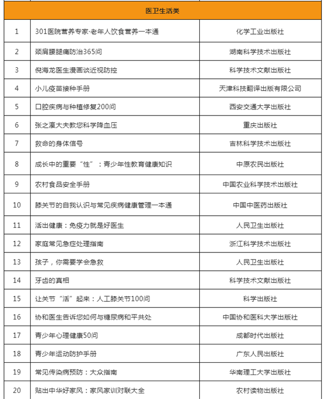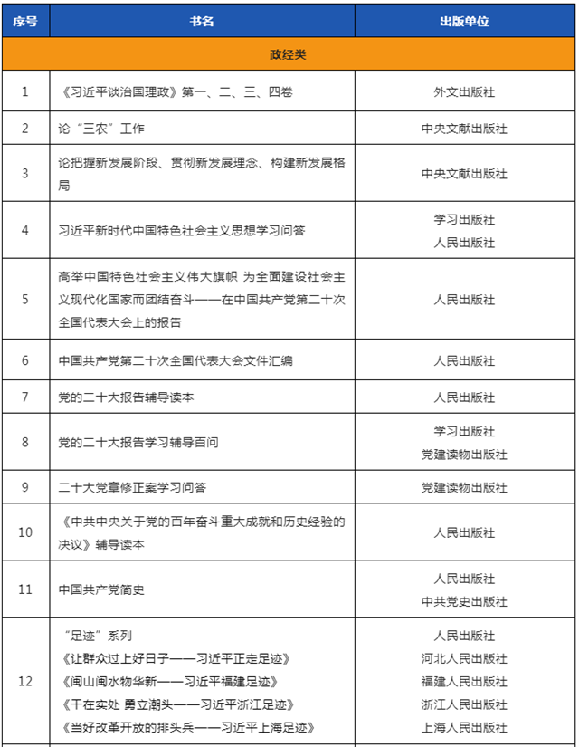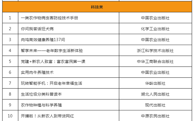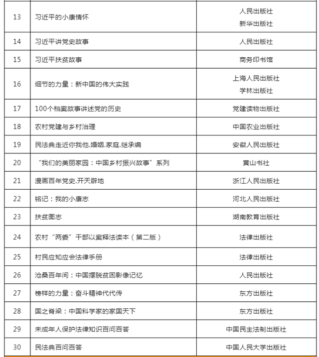 11月25日,作为中央宣传部、农业农村部、国家乡村振兴局主办的2022“新时代乡村阅读季”重点活动之一,2022“农民喜爱的百种图书”正式向社会公布。今年的“农民喜爱的百种图书”共有30种政经类图书、10种科技类图书、20种医卫生活类图书、20种文化类图书、20种少儿类图书入选。