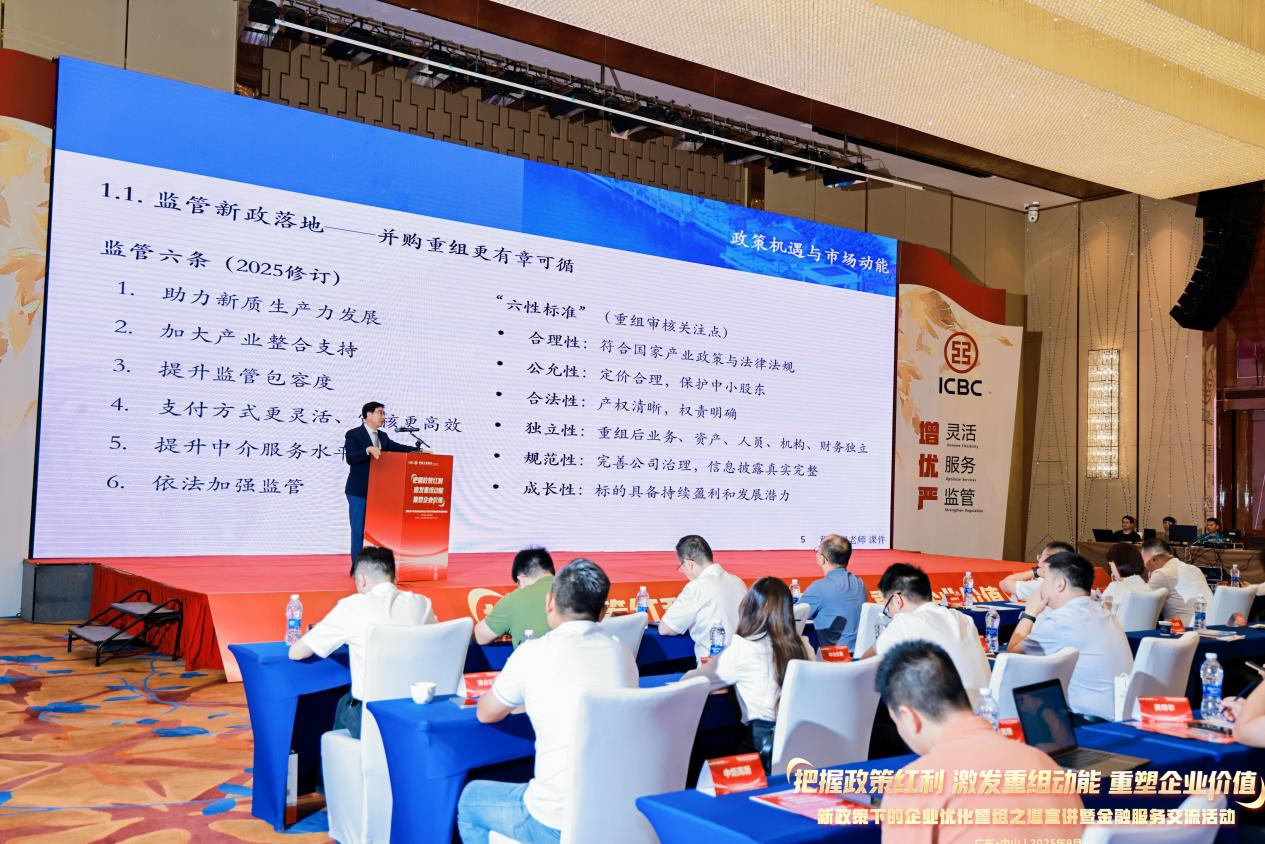 近日,中国工商银行中山分行(以下简称“中山工行”)成功举办“新政策下的企业优化重组之道宣讲暨金融服务交流活动”。此次活动聚焦2025年并购重组政策升级带来的新机遇,特邀中关村国睿金融与产业发展研究会会长、以及工商银行广东省分行投资银行部总经理,深度解读政策红利与实战操作路径。活动吸引了全市多家重点国企、上市公司及上市后备企业的高管踊跃参与,现场座无虚席,近200人齐聚一堂,共同探寻企业优化重组的新动能。