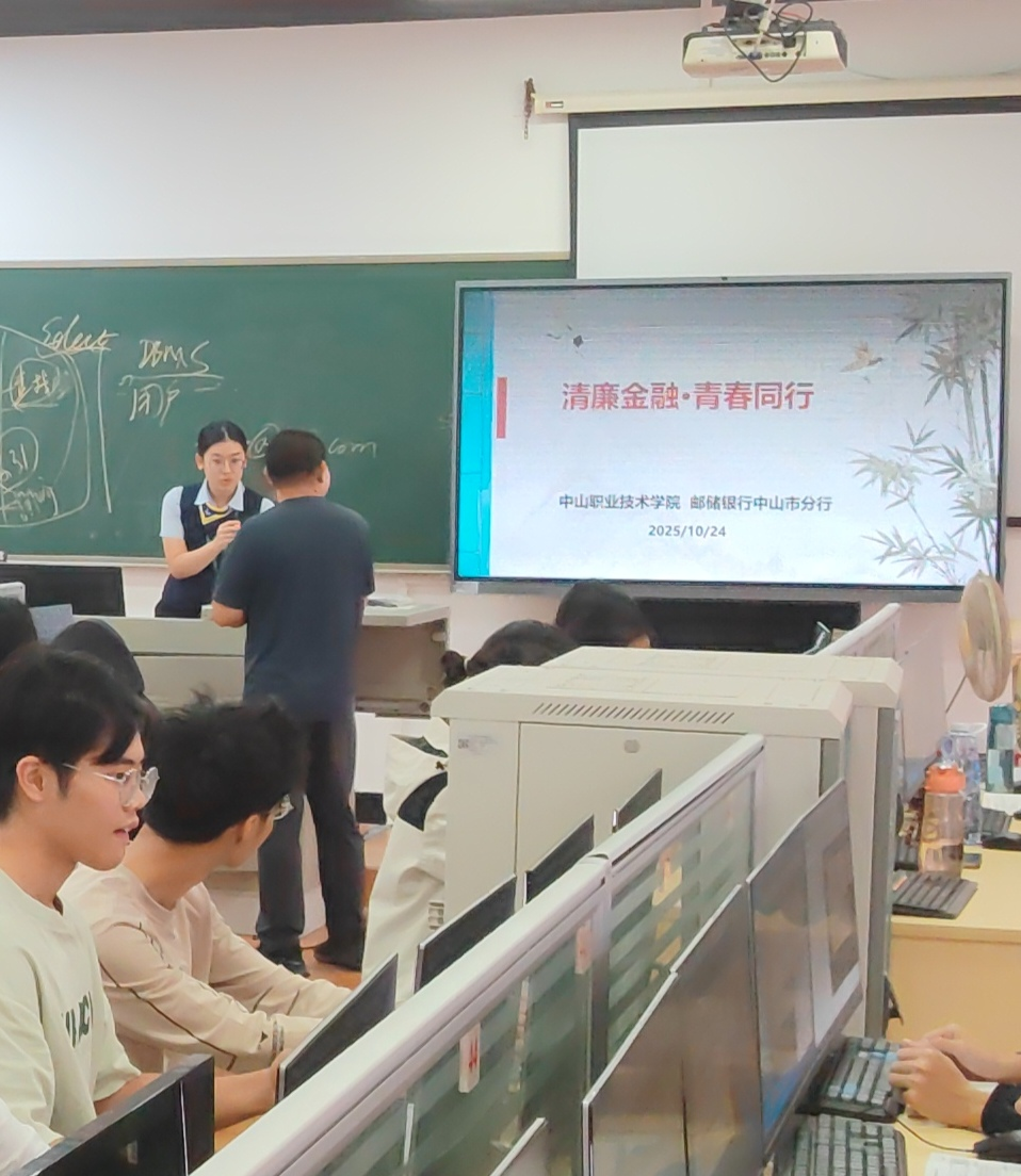 为深化清廉金融文化建设,筑牢高校学生廉洁从业思想根基,引导青年群体树立正确金融价值观与风险防范意识,近日,邮储银行中山市分行走进中山市职业技术学院,开展“清廉金融 青春同行”清廉金融宣教进校园活动。为即将步入职场的学生送上一堂兼具理论性与实用性的清廉金融“启蒙课”。