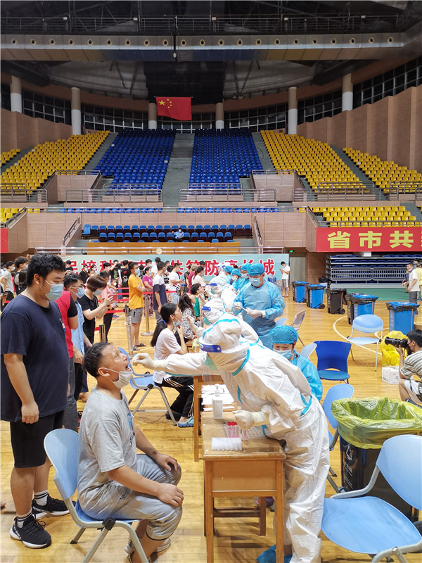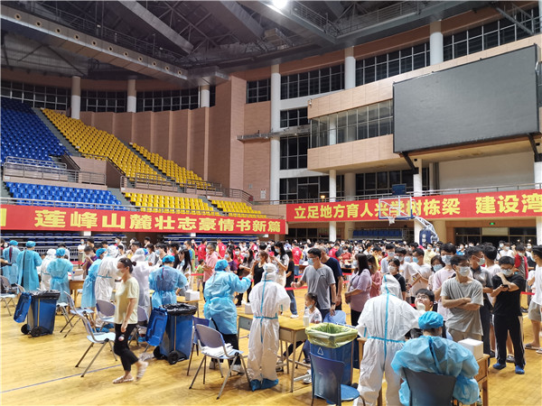 22日21时,电子科技大学中山学院校内体育馆灯火通明。为加快大规模核酸检测进度,快速有效阻断新冠肺炎疫情扩散,石岐街道第一时间响应市委市政府关于疫情防控工作的安排部署,按照街道党工委、办事处的要求与部署,启动了大规模核酸检测,学校暑假留校师生及职工、家属在校内体育馆接受核酸采样。