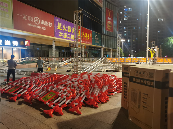 22日23时的南区大信星汇店检测点,近800平方米的检测现场仍在紧锣密鼓地搭棚施工。