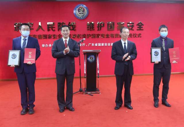 4月14日,广东省国家安全厅和广东省国家安全基金会,联合举办“筑牢人民防线 维护国家安全”表彰活动,对近年来配合广东省国家安全机关工作有贡献人员进行奖励。