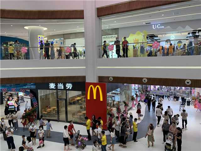 据了解,万民汇MO CITY总建筑面积约7.5万平方米,是集大型超市、零售、餐饮、休闲娱乐于一体的Shopping mall。项目已进驻万达影城、海底捞、麦当劳、星巴克、MJstyle、KKV、万民超市、探险阳光乐园、太二、蛙小侠、大师兄、遇见小面、耐克、阿迪达斯、屈臣氏等90多家中山港口首进品牌;截至目前招商率约为95%,当天同期开业率约为85%。