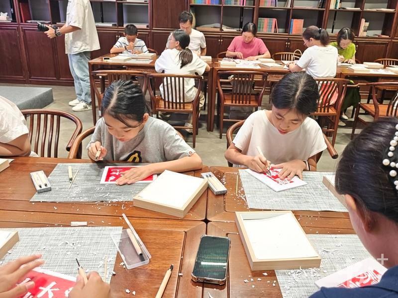 郑绮筠在介绍中提到:“我们雕刻有两种方式,一种是阳刻一种是阴刻,阳刻是……”在她的讲解下,参与者对活动背后的非遗有了更深的理解。