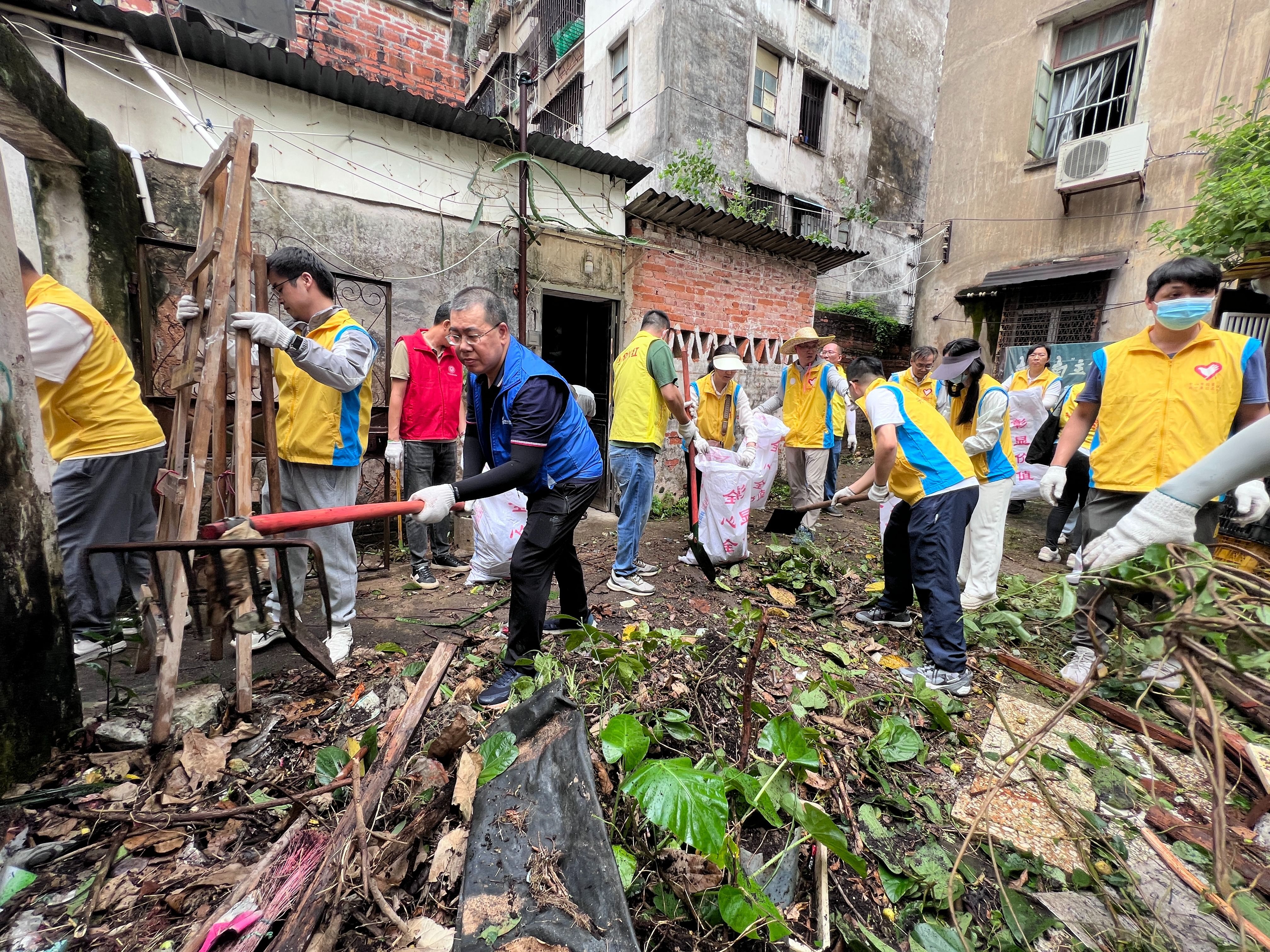 在得知社区困难后,10月12日,兴中集团党委迅速响应、主动作为,冠中公司调配工程作业车、专业绿化人员,统筹组织50名志愿者开展集中攻坚;中山公用集团派出2辆专业清运车支援,与社区工作人员紧密配合、深度清理。经过持续奋战,小院的15吨废弃物全部清理干净,彻底解决了困扰居民多时的环境卫生顽疾。为了阻断蚊媒传播链条,兴中集团还运用无人机对清理后的现场进行专业防蚊媒消杀,确保防控无死角。