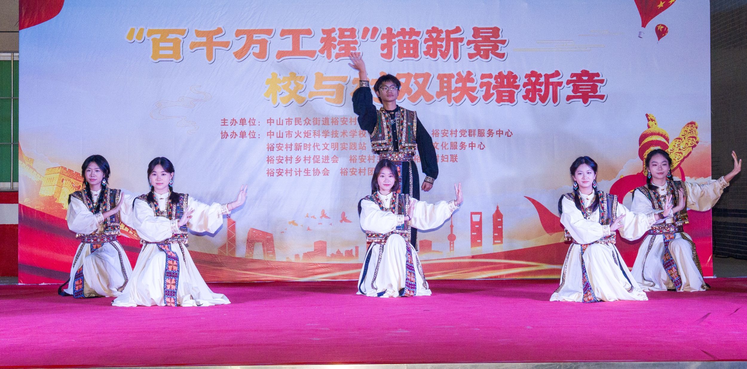 此次汇演是火炬科校深化“双联双助”工作、落实“百千万工程”的生动实践。该校党委委员、副校长陈百良表示,演出以“校村同心、文化共育、成果共享”为理念,依托学校“火炬先锋”党建品牌与“1243”工作法,精准对接村民文化需求,将优质教育资源输送至乡村一线,助力基层治理提质增效。