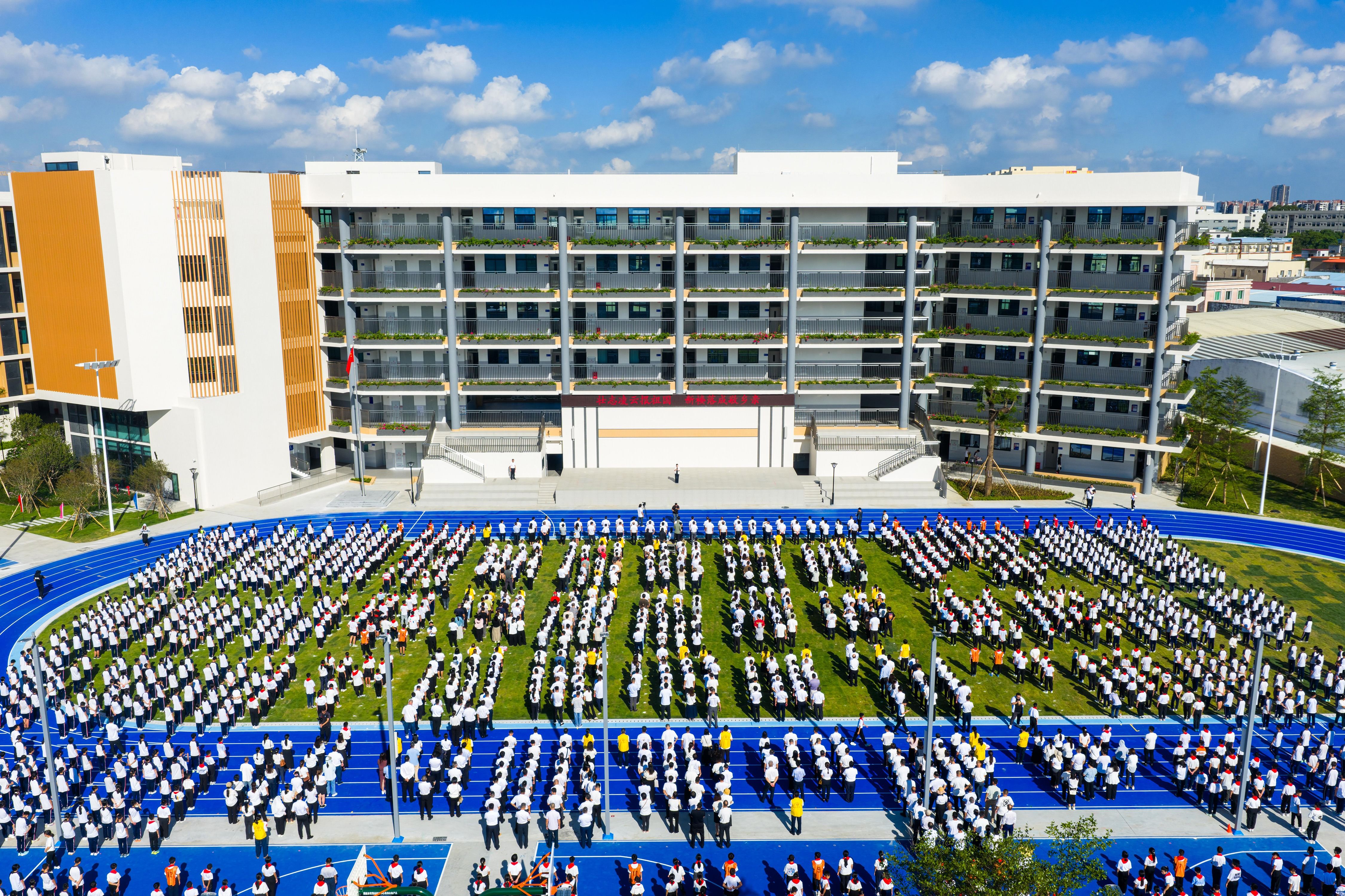 今年9月,东凤二中新校园启用仪式暨凌云阁开放仪式上,学生们在操场上整齐列队,望着眼前崭新的教学楼、风雨操场与绿化景观,眼中满是憧憬。这座校园的蝶变,源于2023年东凤镇启动的“重建二中·振兴东凤”慈善筹款活动,凝聚着社会各界的深情付出。