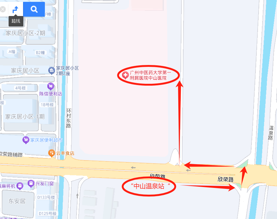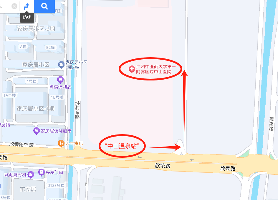 可乘坐211路、605路、609路、688路、998路公交抵达“中山温泉站”后,步行约200米(约3分钟)即可到达中山医院新院区。