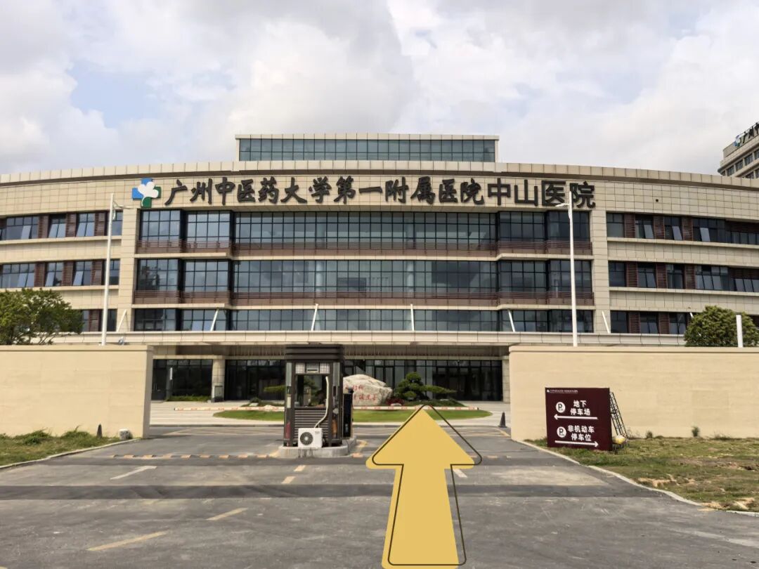 导航搜索“广州中医药大学第一附属医院中山医院”(详细地址:中山市三乡镇大布村欣荣路68号),自驾机动车到达医院,按现场指引至地下负二层停车区,乘电梯前往1层往治未病中心(体检中心)& 2层针推康复科门诊
