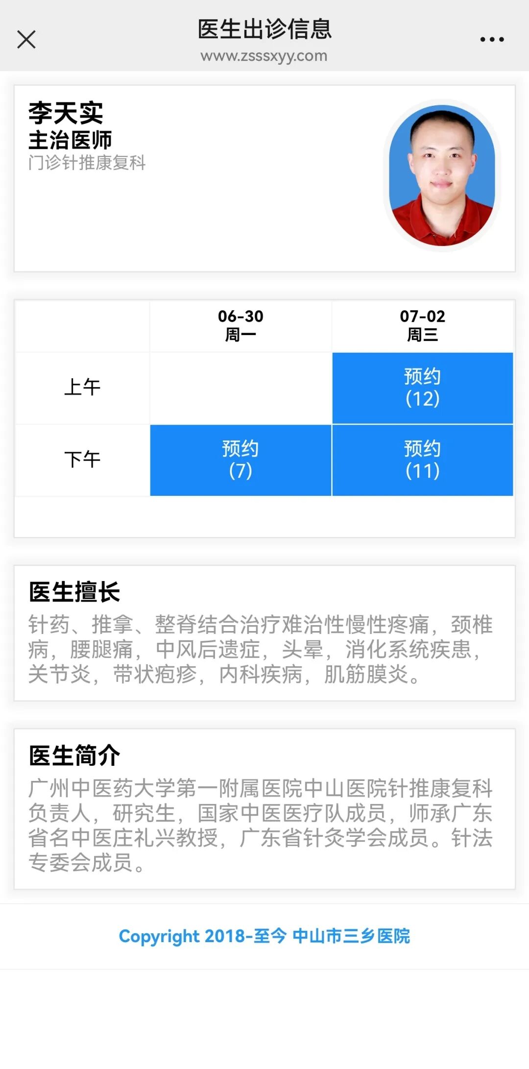 ③ 选择“预约医生”及“就诊时间”即可成功预约
