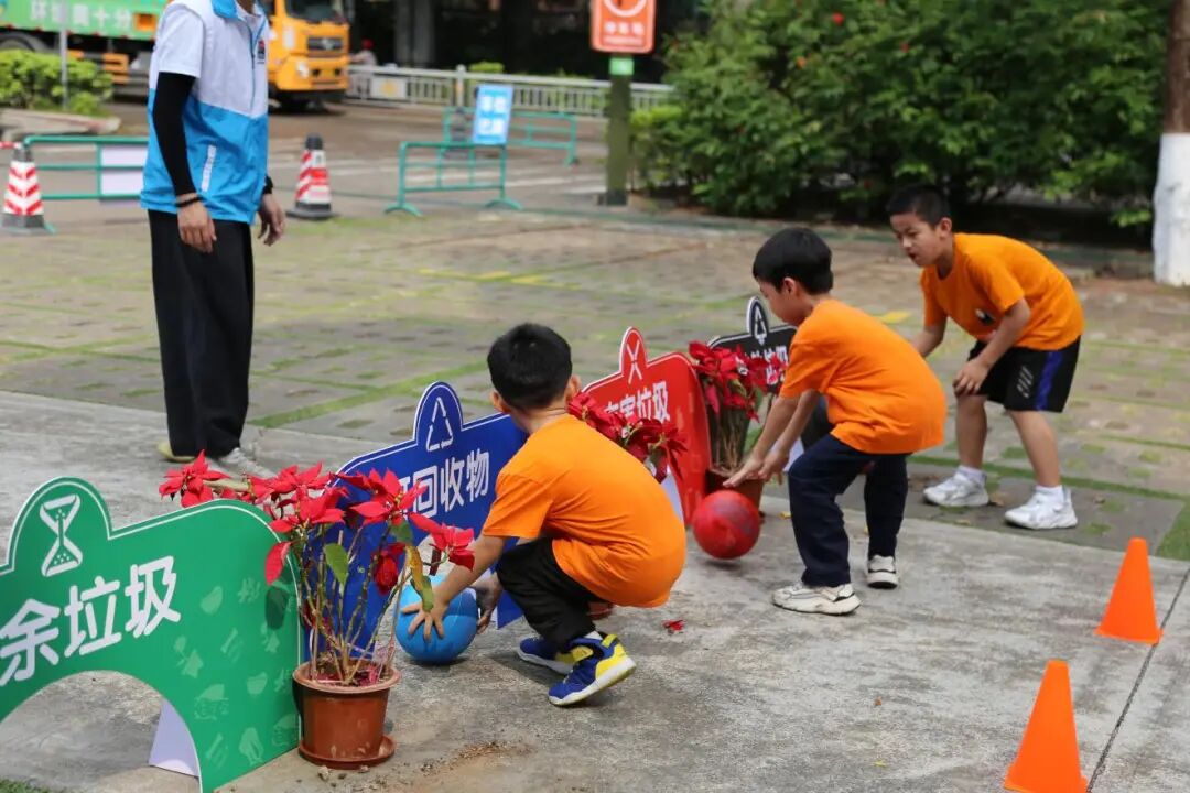 抽取垃圾卡片,找到对应篮球,投入正确分类篮筐,比知识也拼手感。