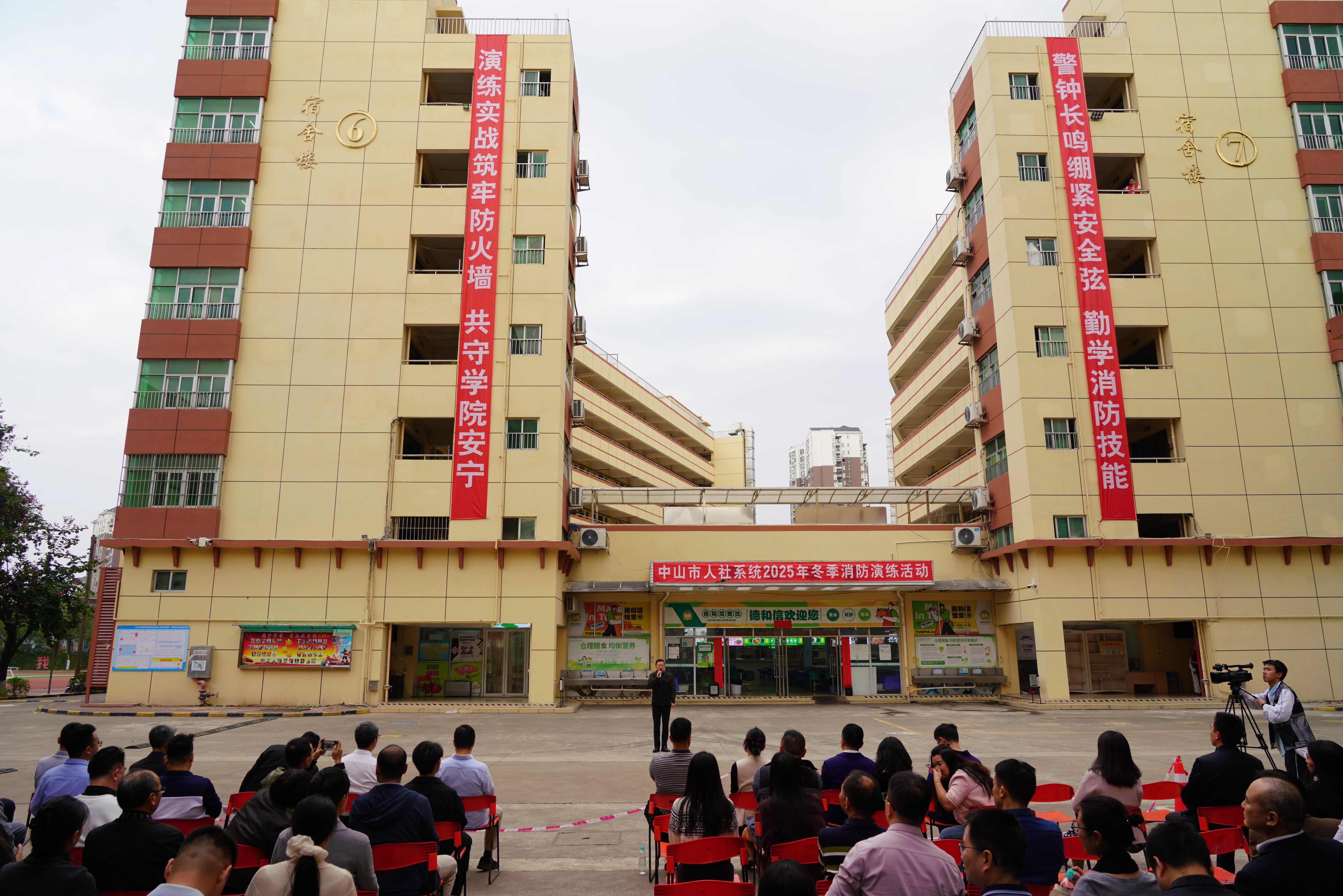市人社系统2025年冬季消防演练活动在中山市技师学院东校区举行。通讯员供图