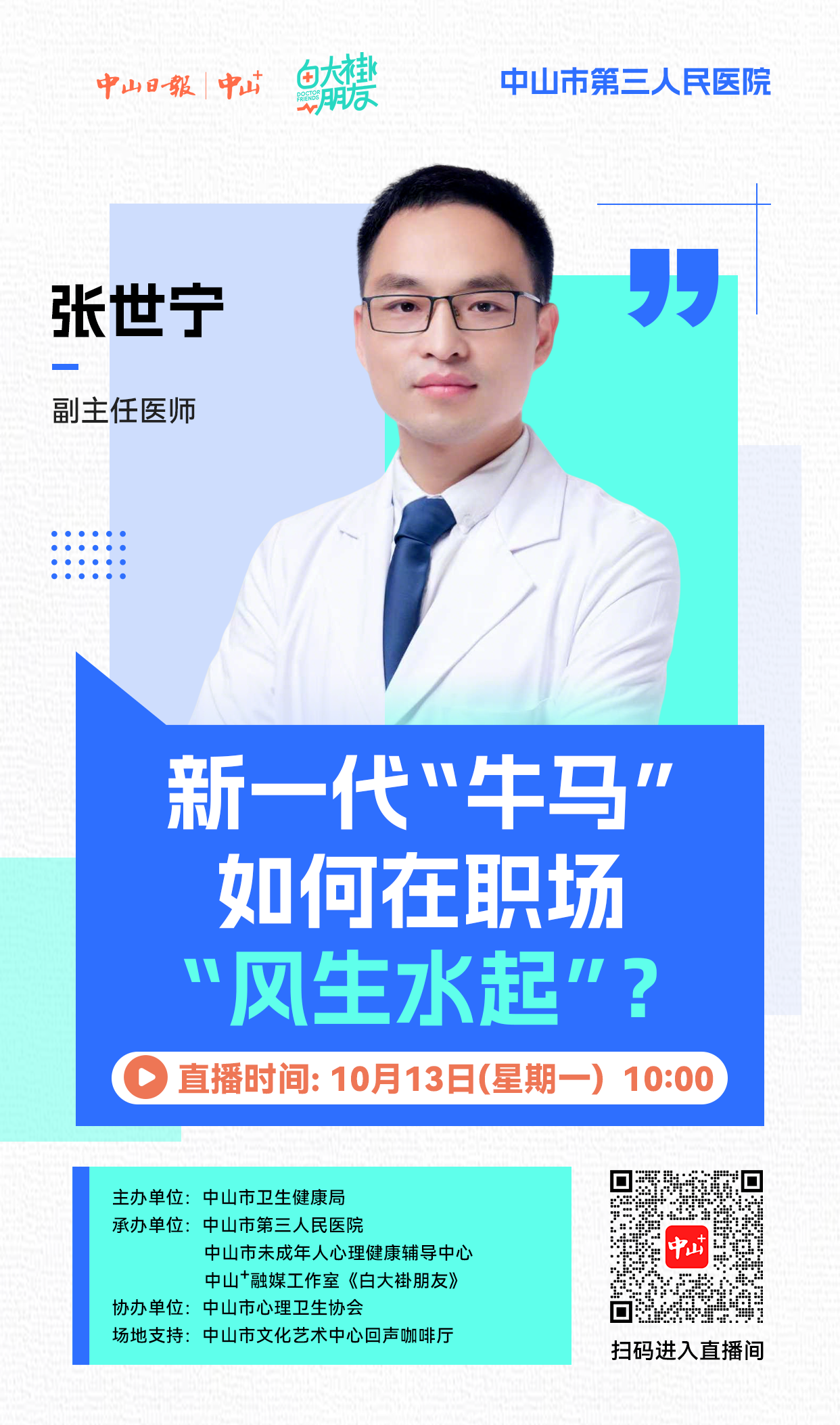 如何观看直播?扫描下方海报二维码,即可进入直播间~~~10月13日周一上午10点,听听心理医生分享如何破解职场心理困局,我们不见不散!