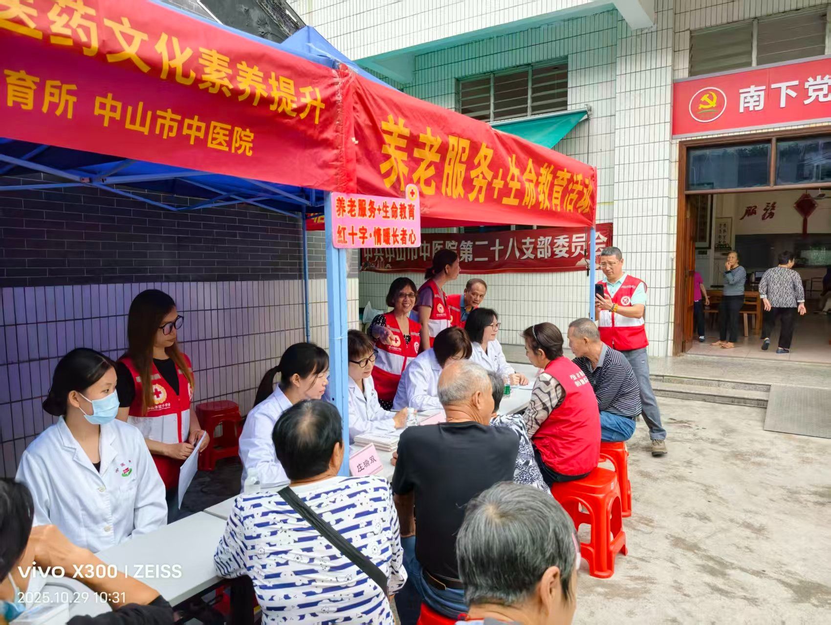 10月29日,中山市中医院老年医学科联合医院党委办公室、营养科,携手中山市红十字会养老志愿服务队、中医志愿服务队,共同走进石岐街道南下党群服务站、迎阳社区红十字会养老志愿服务驿站及长者饭堂,开展“重阳送暖”敬老慰问活动。活动以中医特色服务为核心,为辖区长者送上健康关怀与节日祝福,更搭建起医疗资源与社区养老深度联动的新桥梁。