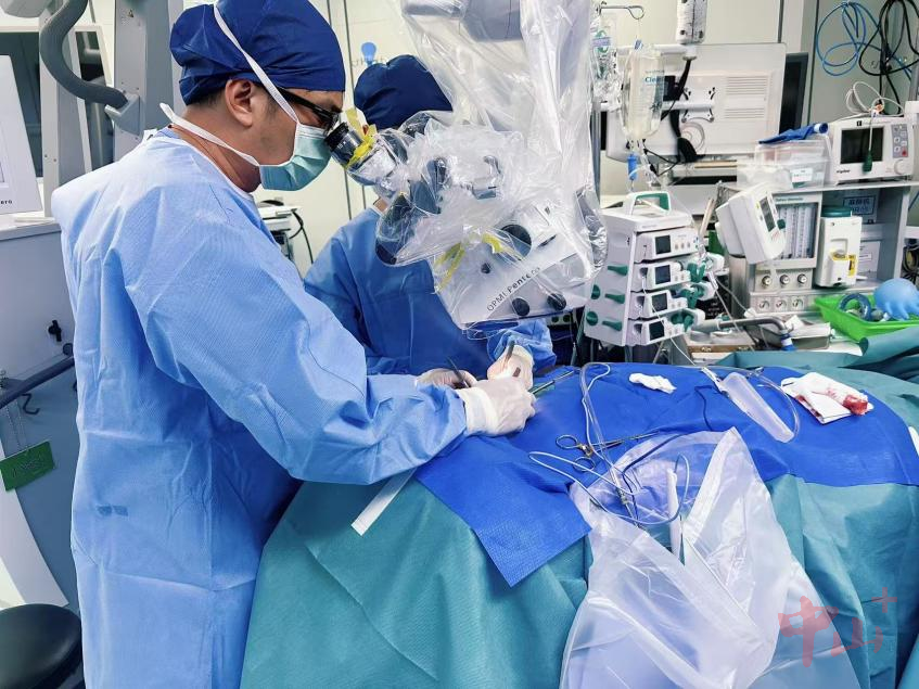 在手术中,中山市人民医院神经外科一区运动障碍疾病及脑功能组组长林伟标,在吴先生颈部的迷走神经,植入一个小型电子刺激器,通过微电流刺激迷走神经,激活大脑中的神经通路,促进神经功能的恢复。