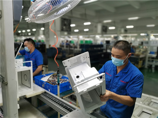 装配车间内机器轰鸣,生产材料堆满了车间的过道,成品从生产线上鱼贯而出,车间却难见到工人的身影。这是记者7月9日下午在广东格兰仕中山基地南厂区看到的场景。疫情让国际贸易形势变得复杂严峻,一些出口企业出现先被催单、后被取消订单,但格兰仕在全球不同地区的销售市场却逆势增长,今年1-5月份格兰仕微波炉在北美、德国、英国、日本等许多国家和地区市场取得30%以上增长,今年产值预计增长达到35%。