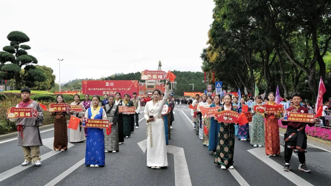 2月24日,甲辰龙年正月十五,中山市最大的慈善盛事——“第37届中山市慈善万人行·助力‘百千万工程’”巡游活动如期在兴中道举行。中山市实验中学(以下简称“中山实中”)教师方阵和西藏生方阵以昂扬向上的精神面貌,特有的文化元素闪耀整个方阵队伍,获得广大市民的一致好评。