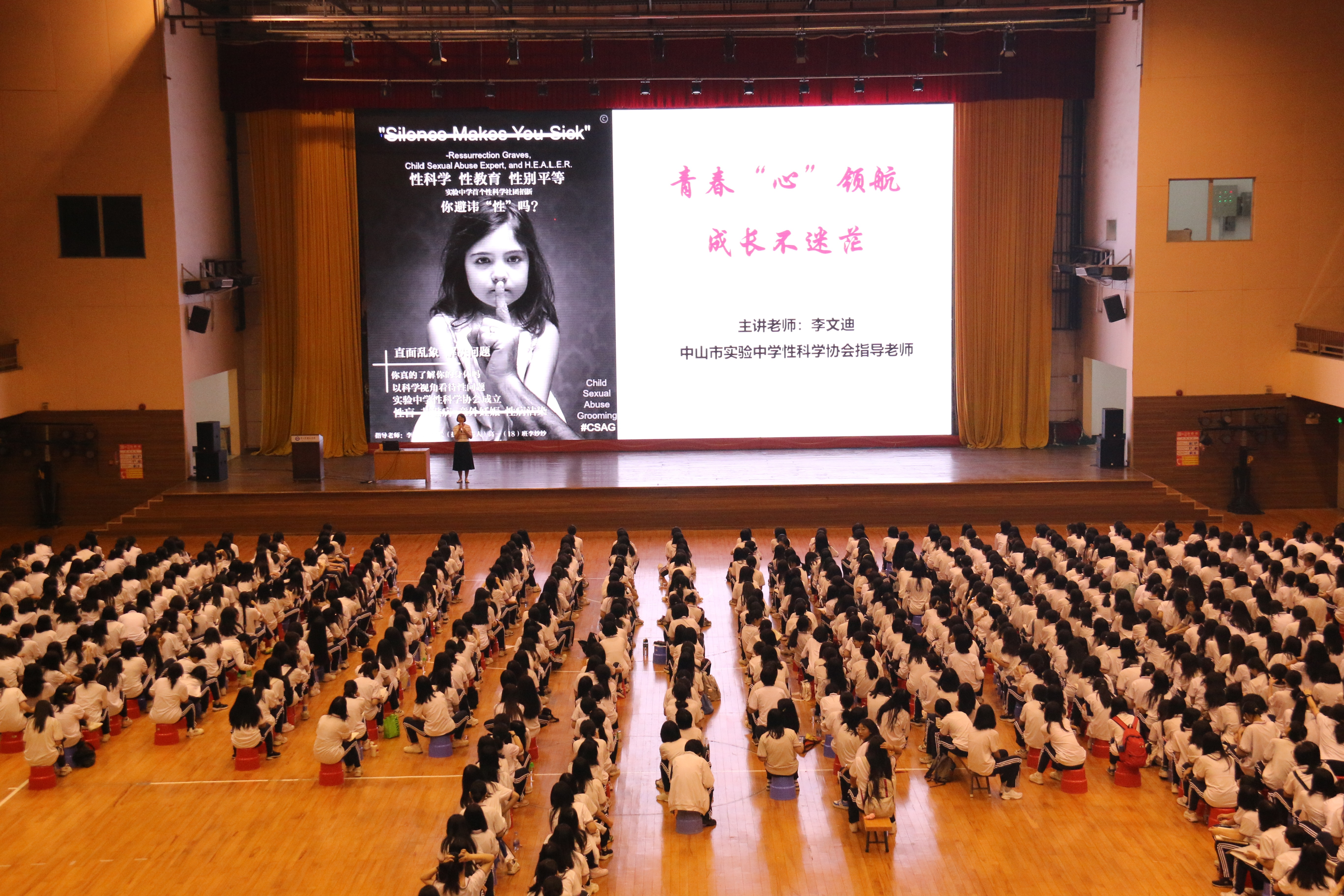 4月2日晚,李文迪给中山实中的高二女生作了一场精彩的青春期教育讲座。(受访者供图)