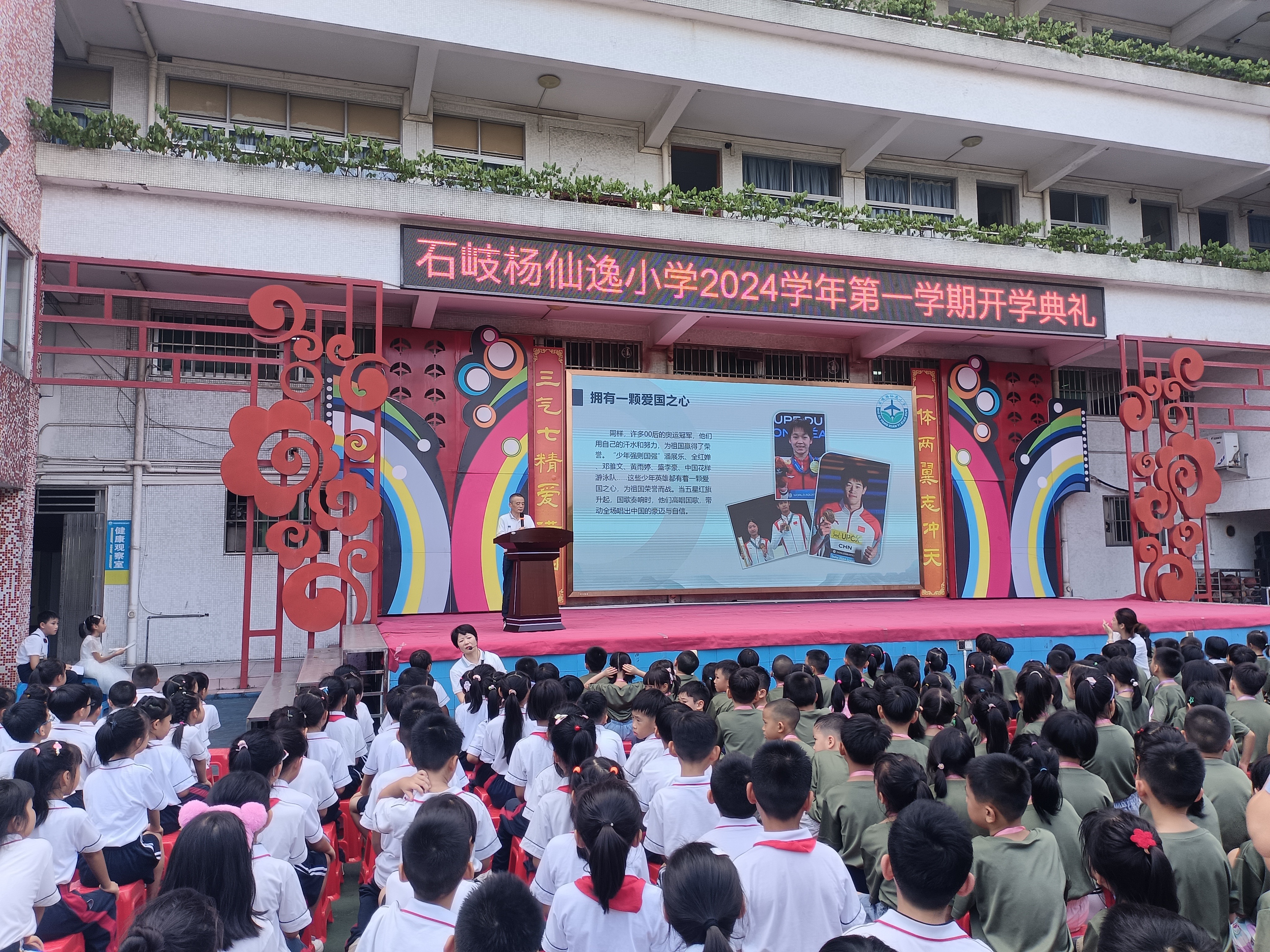 在“一起飞 爱满怀”的开学典礼上,潘志坚校长以巴黎奥运会上华夏健儿的拼搏精神为引子,寄语同学们要怀揣五颗心:对祖国的赤子之心、面对挑战的勇敢之心、对他人帮助的感恩之心、面对变化的沉稳之心以及面对得失的平常之心。