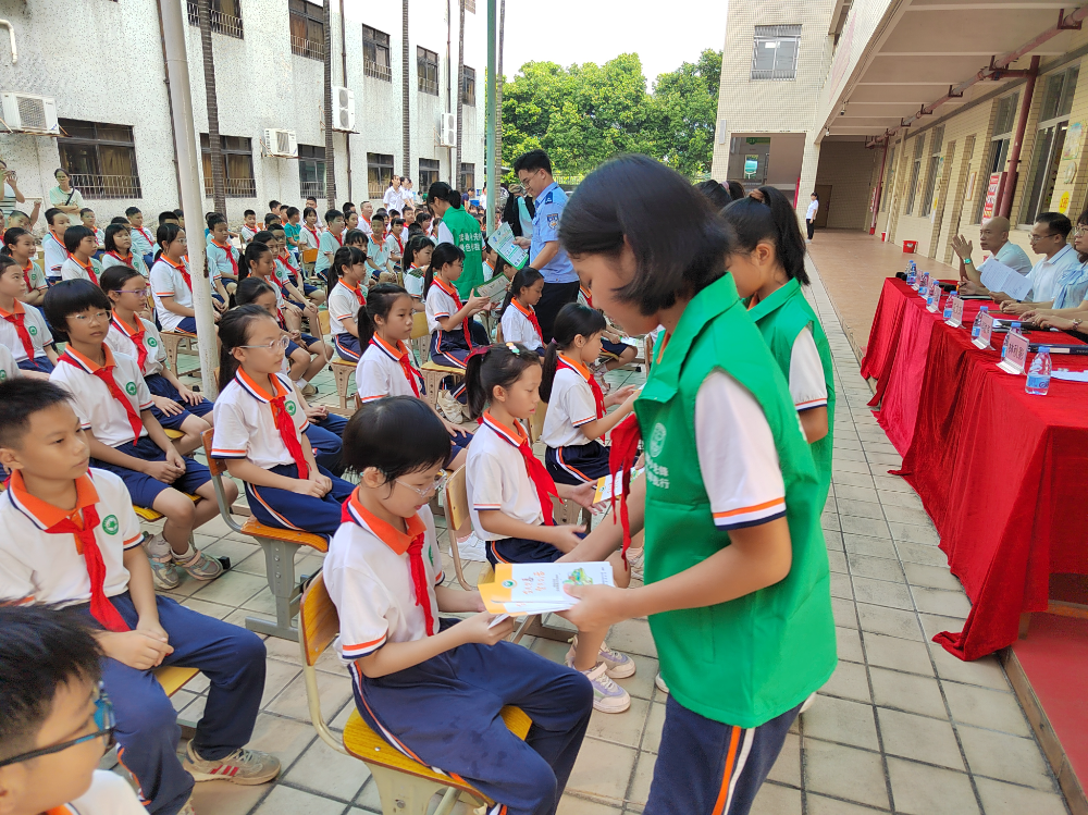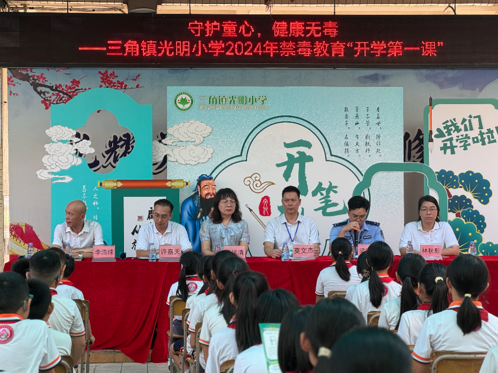 9月2日上午,三角镇光明小学法治副校长与学校禁毒少先队和少年交警队迎接同学们的回校,他们通过现场宣传、派发宣传手册等,让同学们更直观地认识交通安全知识和禁毒知识。