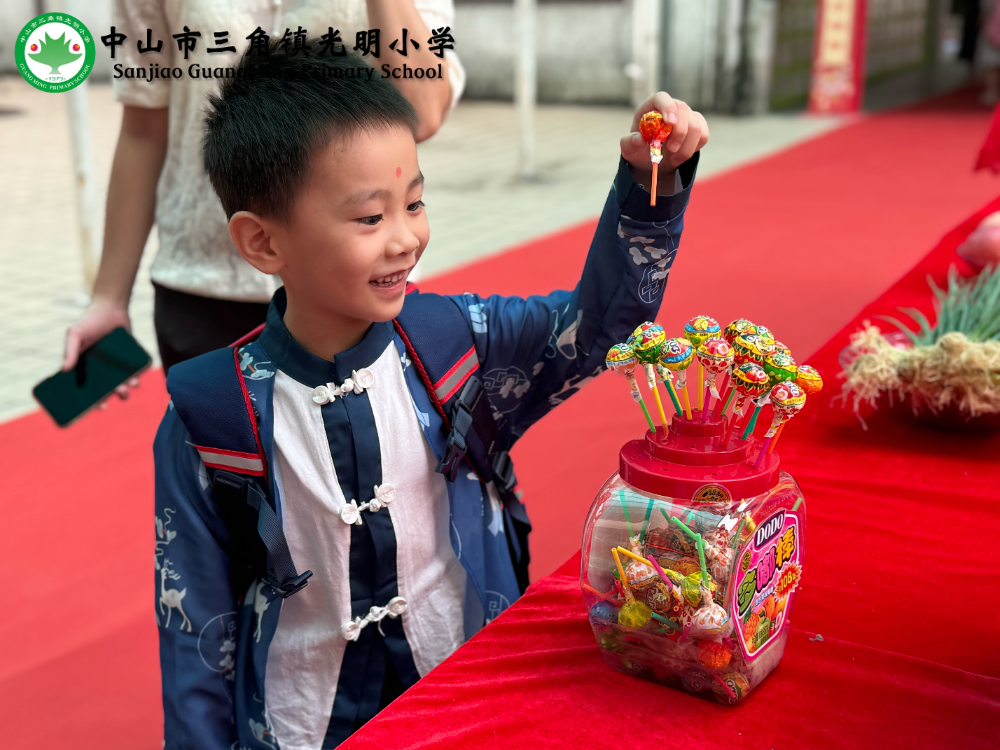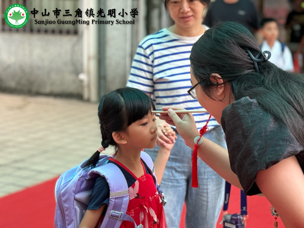 8月30日上午,三角镇光明小学的新同学们身穿汉服踏上鲜红的地毯,老师们以温暖的笑容和庄重的姿态,引领着一年级的新生们进行了一场意义非凡的传统“开笔礼”仪式,处处洋溢着温馨的入学氛围。