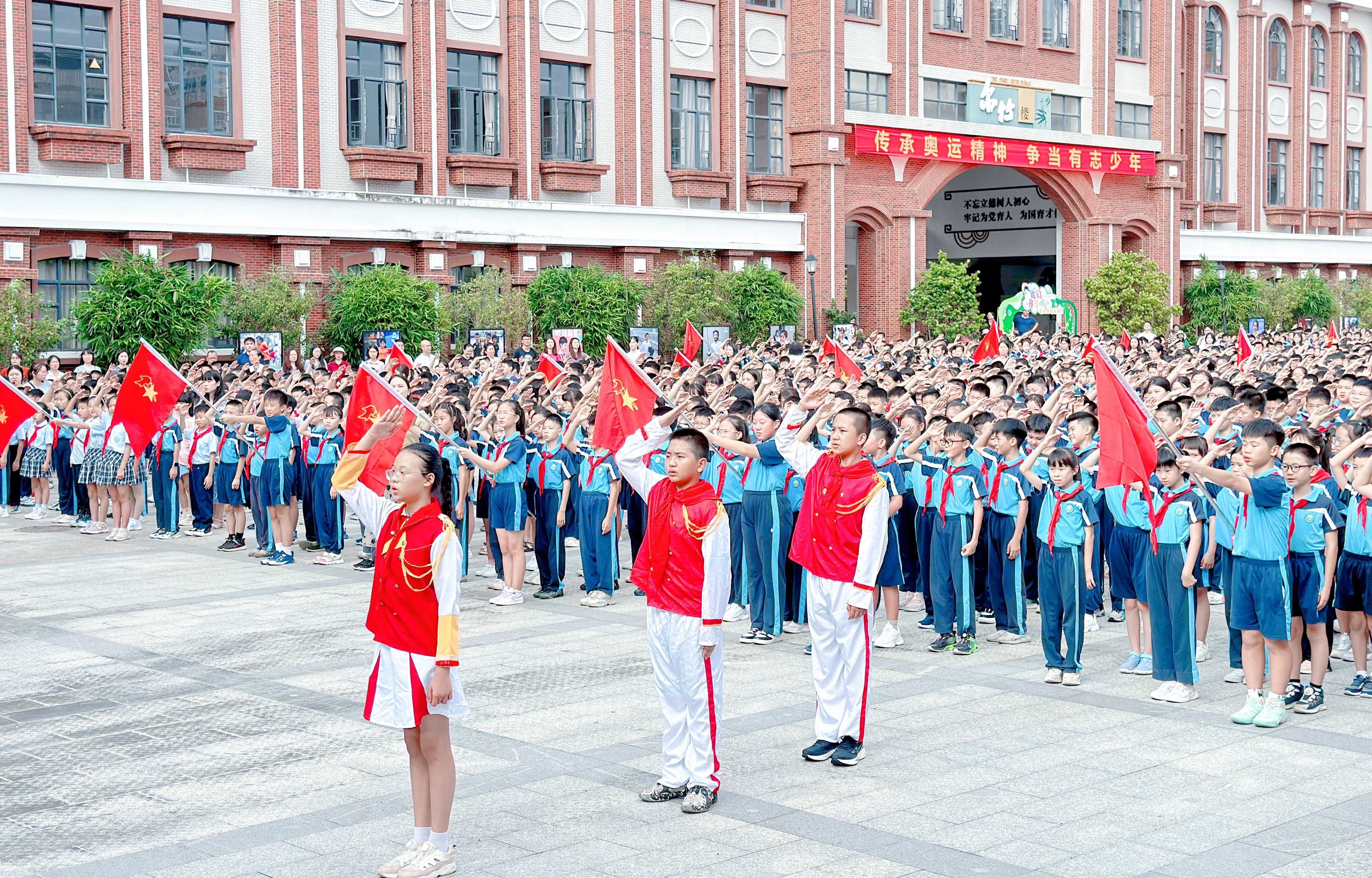 9月2日早上,竹秀园中心小学的全体师生齐聚于校园中,共同参与了新学期的开学典礼,踏上了新的学习旅程。本次开学典礼以“传承奥运精神,争做有志少年”为主题。