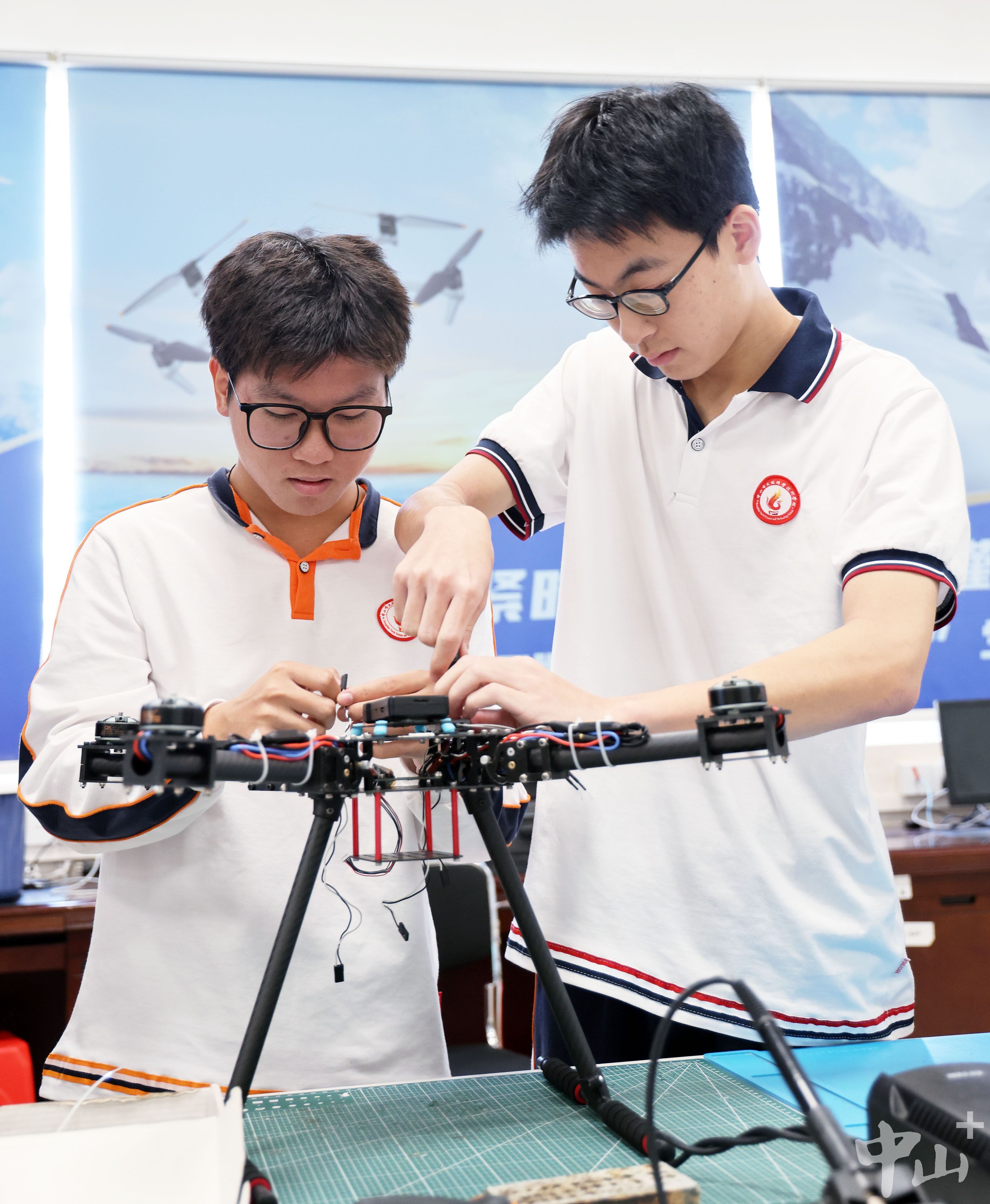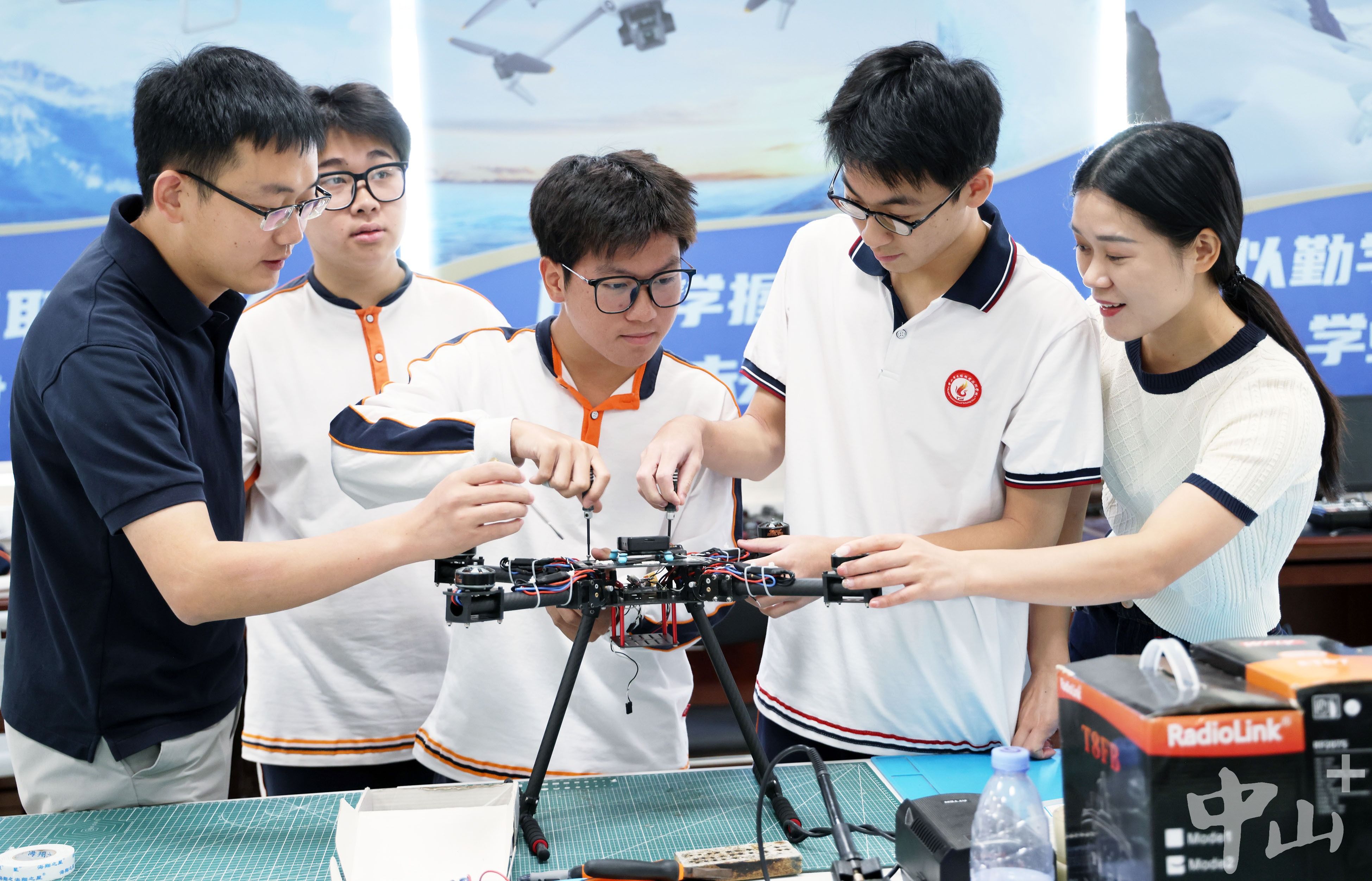 “无人机竞赛组实行梯队建设,高一组织学生报名,围绕模拟飞行进行基础训练,高二进行进阶训练。”竞赛教练王再浩介绍,教学过程中,教练会根据竞赛内容将教学内容调整优化,进一步提高学生的专业能力,使学生的学习不仅仅停留在课本上。“老师今年也参加了教学能力比赛,还获得了省一等奖。”王再浩说,这也是“以赛促教,以赛促学”的成果体现。