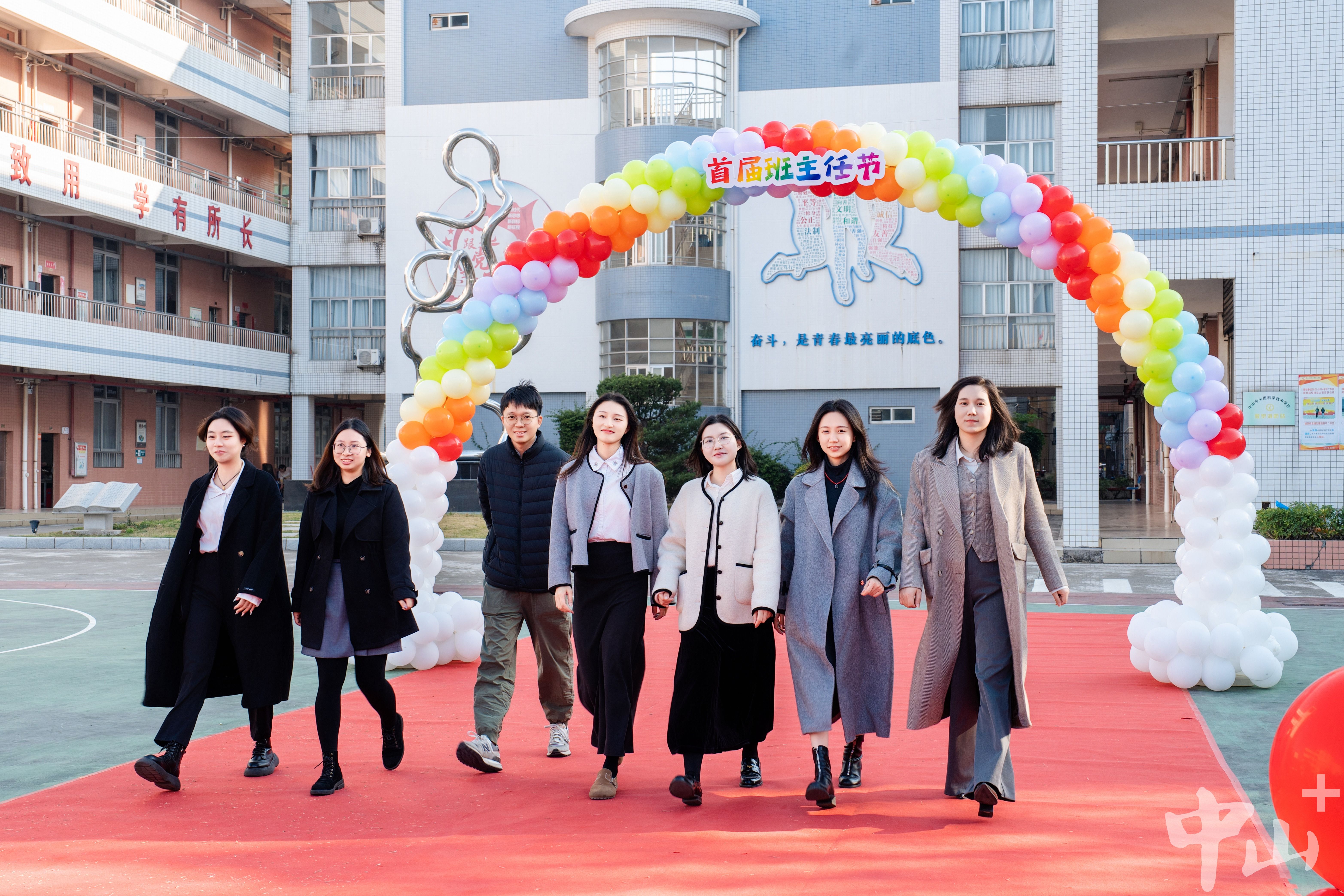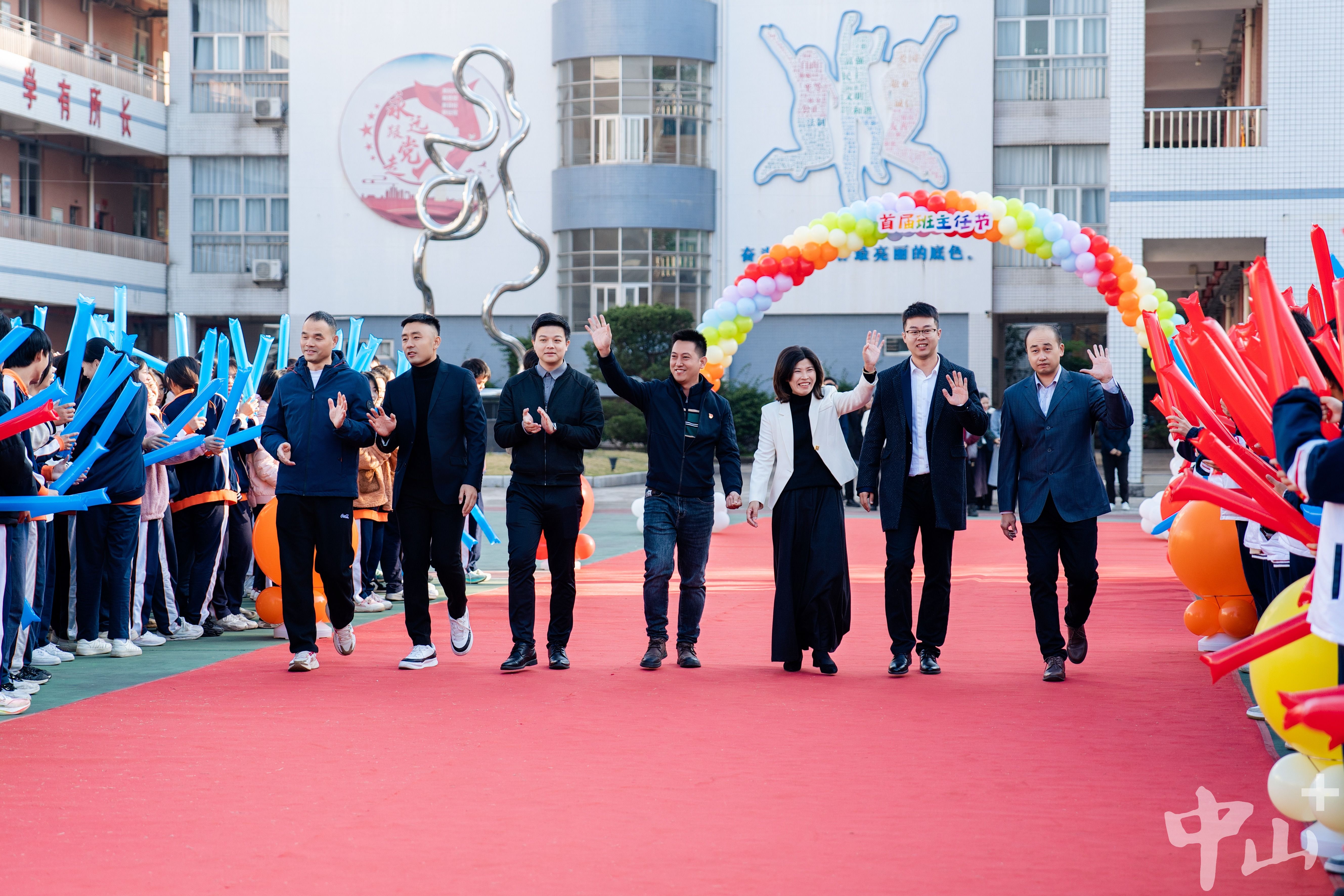 随后,各学部的班主任团队踏上红地毯,他们既是技能的传授者,更是学生品格的塑造者,他们用脚步丈量着教育的深度与广度,每一步都踏出了师者的荣耀和光彩。学生们的欢呼声愈发激昂,班主任们朝学生挥手致意,脸上洋溢着自信幸福的笑容。