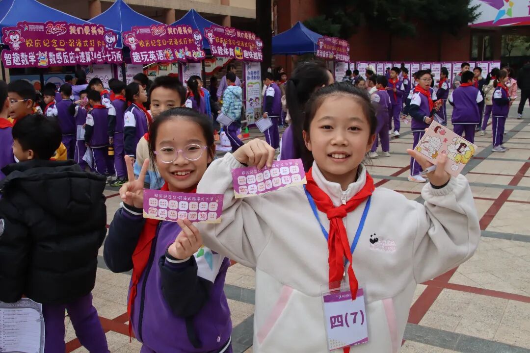 值得一提的是,孩子们在各摊位游戏中赢得的积分,还可以在“未来星辰·礼品兑换”摊位兑换各种心仪的礼品,如学校文创产品、丽景币等。不仅激发孩子们的参与热情,也让他们在欢笑中收获了对学校的祝福和对未来的美好期许。