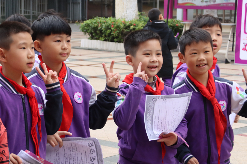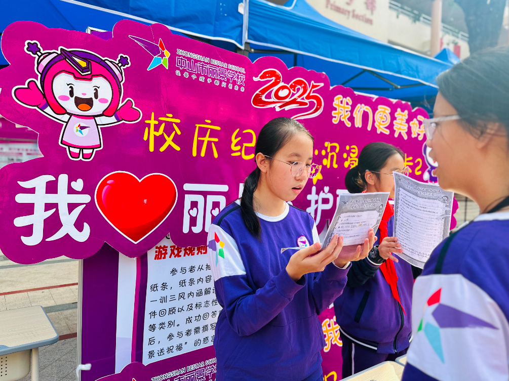 在“知丽景爱丽景·校史问答打卡”摊位,孩子们通过回答关于学校历史的问题,不仅重温了校徽、校训的内涵,还增强了作为丽景人的归属感和幸福感。在“护丽景荣丽景·为母校敬礼”摊位,孩子们向母校敬礼,表达对学校的敬意和感激之情。