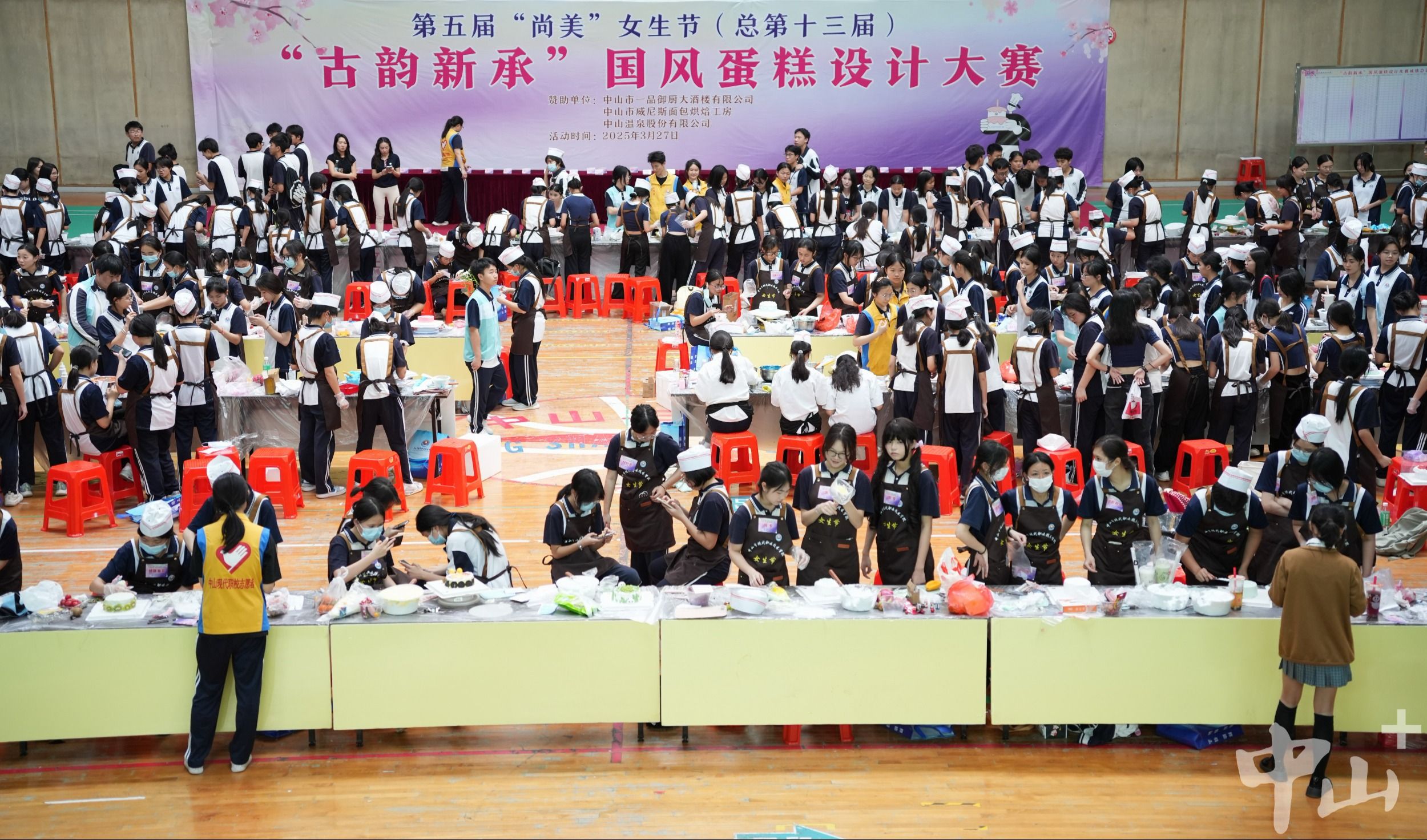 3月27日,中山市现代职业技术学校举行第五届“尚美”女生节压轴活动——“古韵新承”国风蛋糕设计大赛。活动以“古韵新承”为主题,吸引了72支参赛队伍、216名选手参与。
