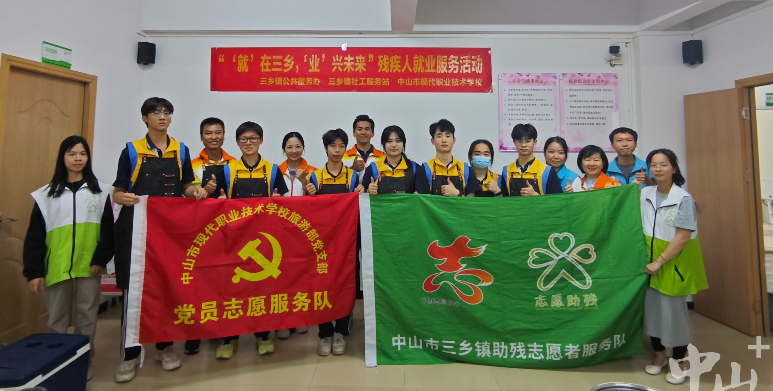 3月26日下午,中山市现代职业技术学校(简称“中山现代职校”)旅游部党支部与校团委联合三乡镇公共服务办、三乡镇社工服务站,在平东社区举办主题为“‘就’ 在三乡,‘业’ 兴未来”的残疾人就业服务活动。