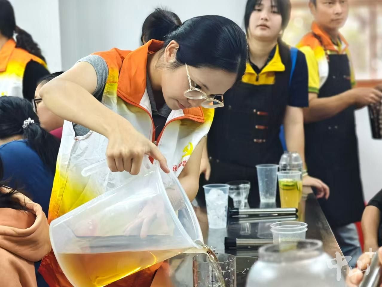 活动现场,两位教师对茶叶的选择、水温和泡制时间的精准把控,以及柠檬的细致处理和糖浆添加量的微妙调整等,都进行细致演示。