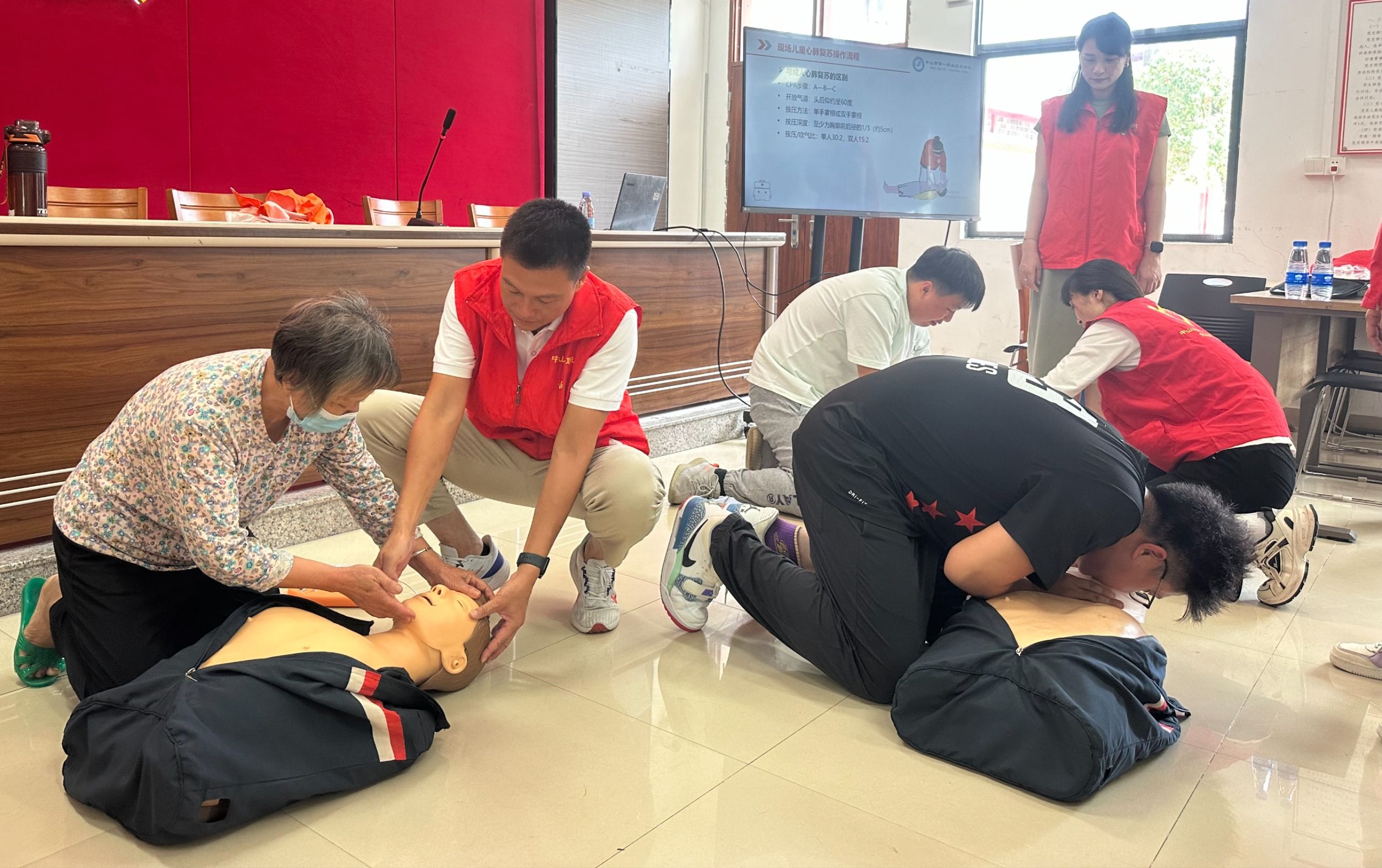 该校体育科科组长王建明介绍,暑期是溺水、中暑、意外伤害的高发期,本次培训重点教授儿童溺水急救、气道异物梗阻处理、心肺复苏,AED使用等实用技能,通过手把手的教学,让社区居民和学生轮流上手练习,更快地掌握急救动作要领,为突发情况下的“黄金救援时间”赢得先机。