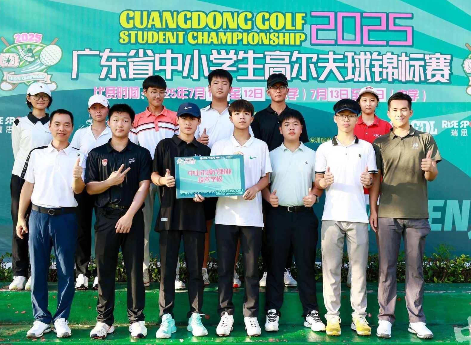 7月15日,2025年广东省中小学生高尔夫球锦标赛(中学组)在阳江市收杆。经过激烈角逐,中山市现代职业技术学校(以下简称“中山市现代职校”)斩获学校组高中团体总分一等奖(第一名)、公开组高中团体总分一等奖(第一名)和多个个人比杆赛冠军,成功实现三连冠。