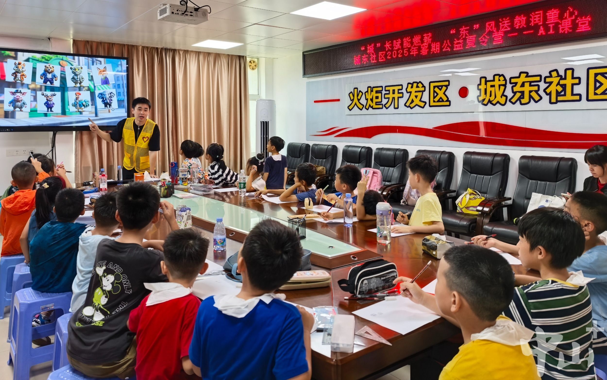 在AI趣味课堂上,火炬科校老师罗文通过科普讲解与视频展示,引领孩子们走进人工智能世界;教师马伟丽结合前沿科技,揭秘机械奥秘;教师曾小春则指导孩子们动手实践,用粘土创作形态各异的“科技人”。现场气氛热烈,充满“知识含量”的课程,有效激发了孩子们对科技的兴趣。