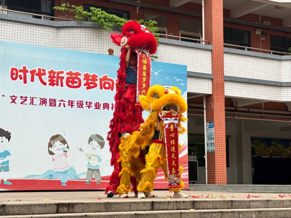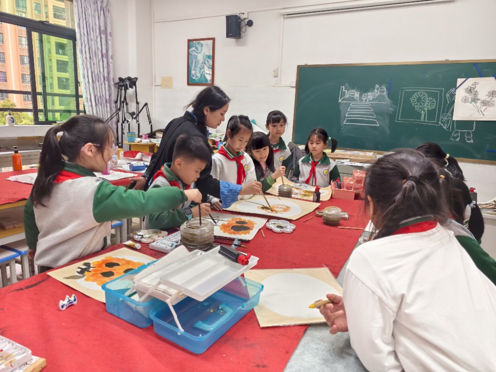 传统文化润心灵。板芙小学的空竹课程让学生在翻飞旋转间传承非遗技艺,新联小学的非遗醒狮课程让孩子们在锣鼓点中感受岭南文化,湖洲小学的国画课程、芙蓉学校的书法课程引导学生以笔墨涵养审美情操。