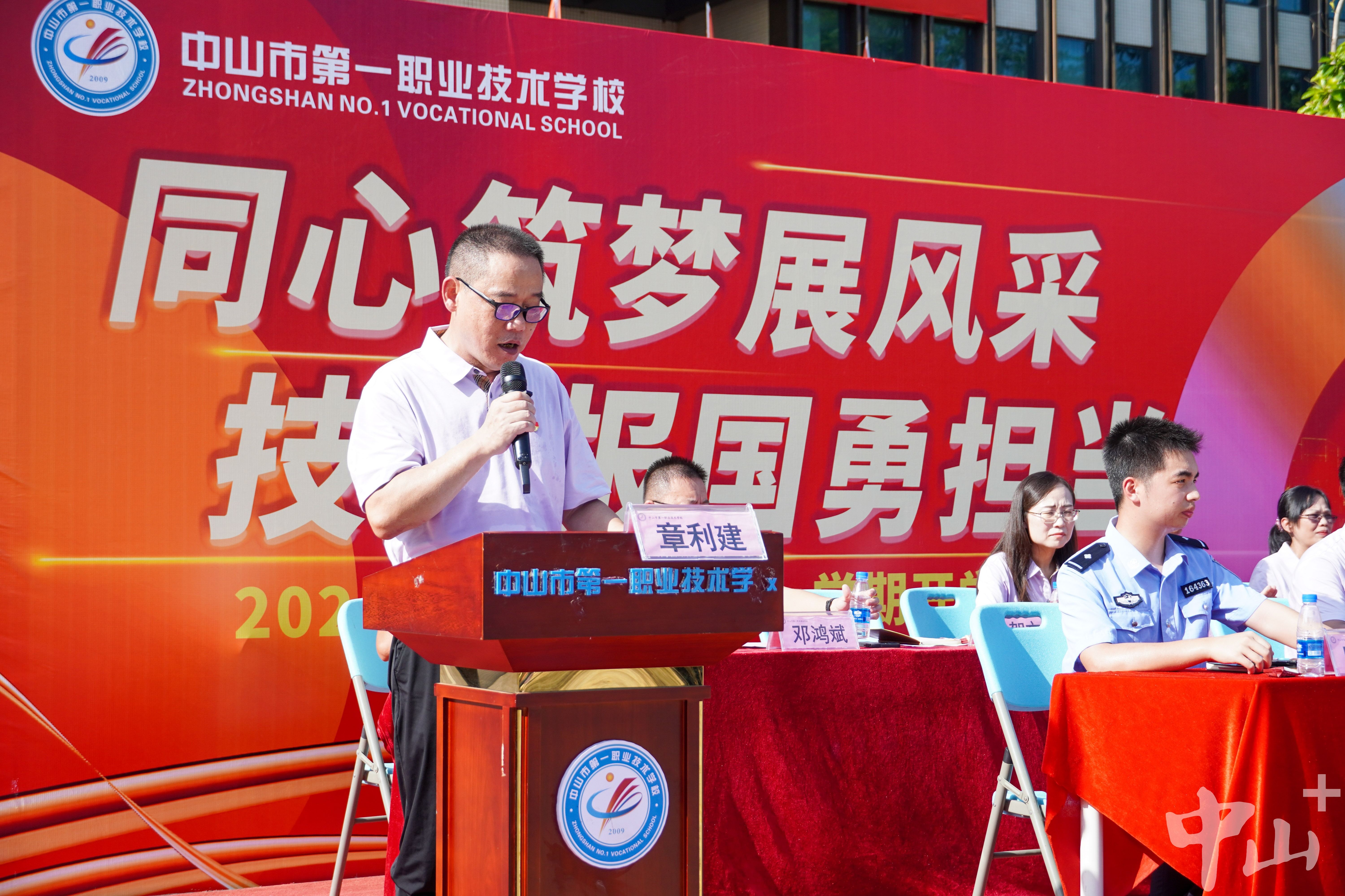 9月11日上午,中山市第一职业技术学校党委书记章利建以“以史为鉴明方向,技能报国展担当”为主题,为全校师生开讲新学期“思政第一课”,号召学子们深刻认识和把握新时代职业教育的新使命,树立“强国必有我”的信念,在历史传承中接续奋斗,开创高质量发展新局面。
