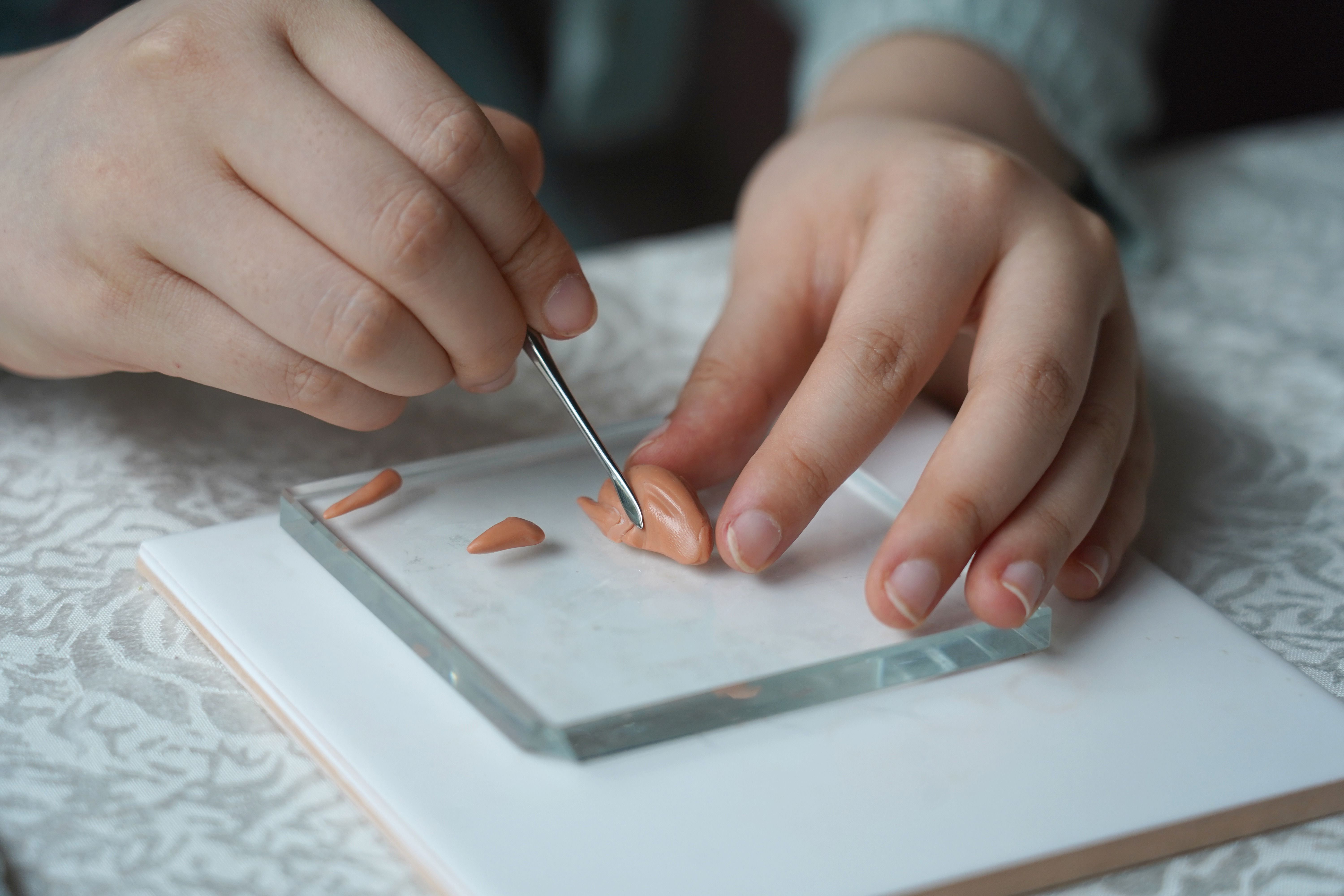 回到家后,她对着照片,从选泥开始,精心挑选与乳鸽色泽、质感相符的软陶。接着是塑形,她用灵巧的双手,一点点塑造出乳鸽圆润的轮廓、饱满的胸脯。刻花纹时,更是全神贯注,力求将乳鸽表皮的纹理完美呈现。上色、刷亮油,每一步都小心翼翼,最后用热风枪加热定型,一只栩栩如生的微缩版软陶脆皮乳鸽才大功告成。