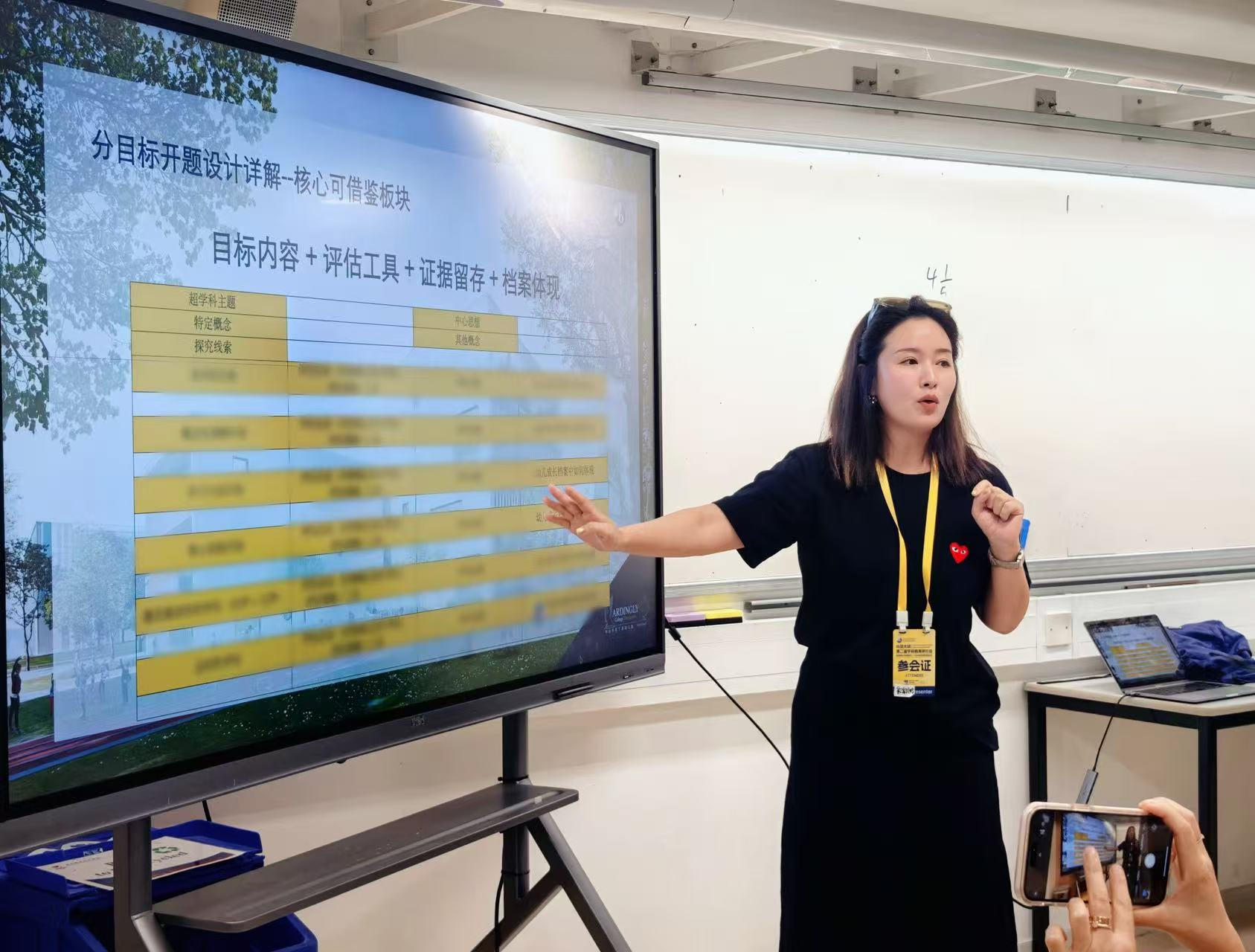 在IB教育理念的引领下,阿丁莱幼儿园坚持以儿童为中心的教育立场。团队运用“以终为始” 的课程设计思路,明确幼儿理解目标,将评估贯穿课程始终,实现“以评促学”。韩静在分论坛中,结合一线实践案例与配套评估工具,详细阐释了评估如何成为读懂儿童、支持发展的关键路径。
